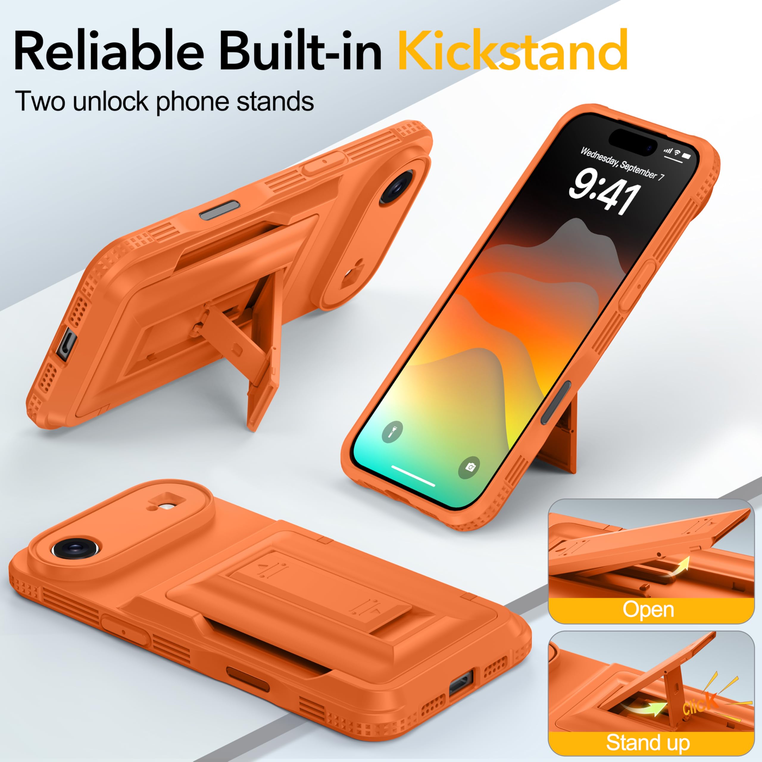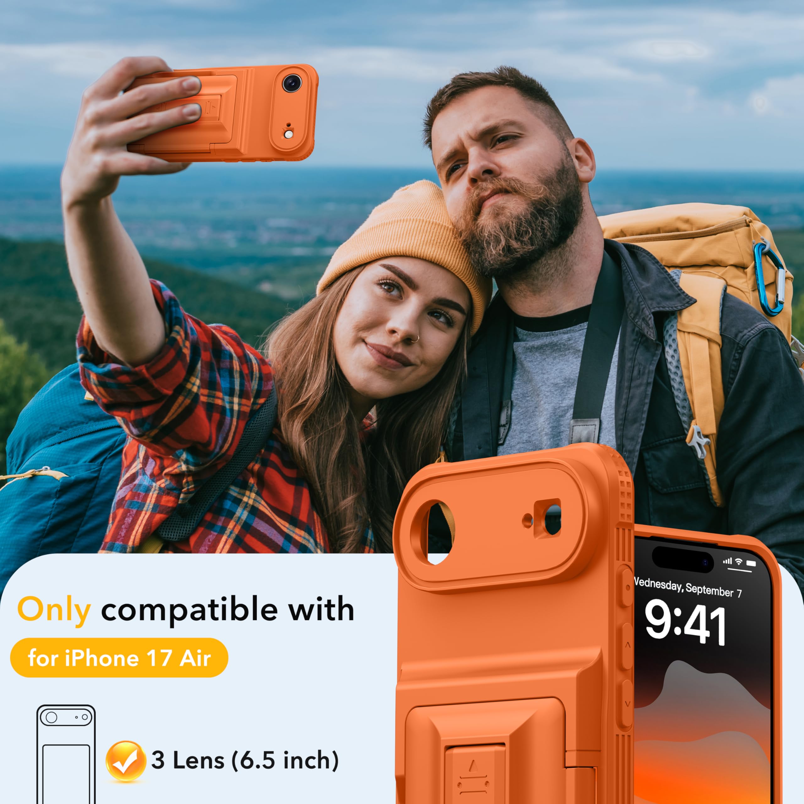 [Reliable Built-in Kickstand] The Oterkin iPhone 17 Air case 6.5 inch has an embedded stand with a smooth touch, providing stable support for hands-free viewing and mobile photography. The stand has undergone over 30,000 opening and closing tests, proving its durability while supporting your phone in both portrait and landscape modes.