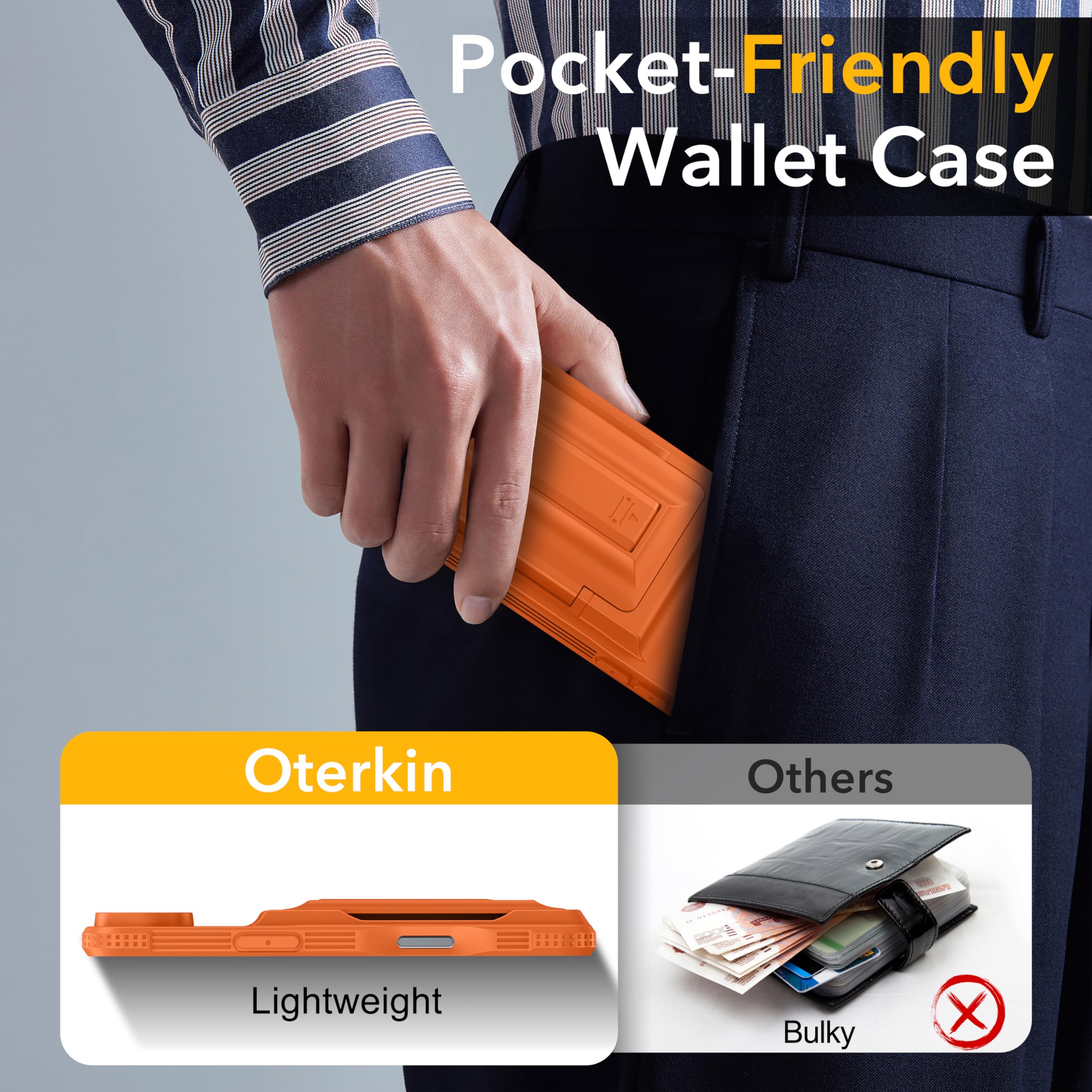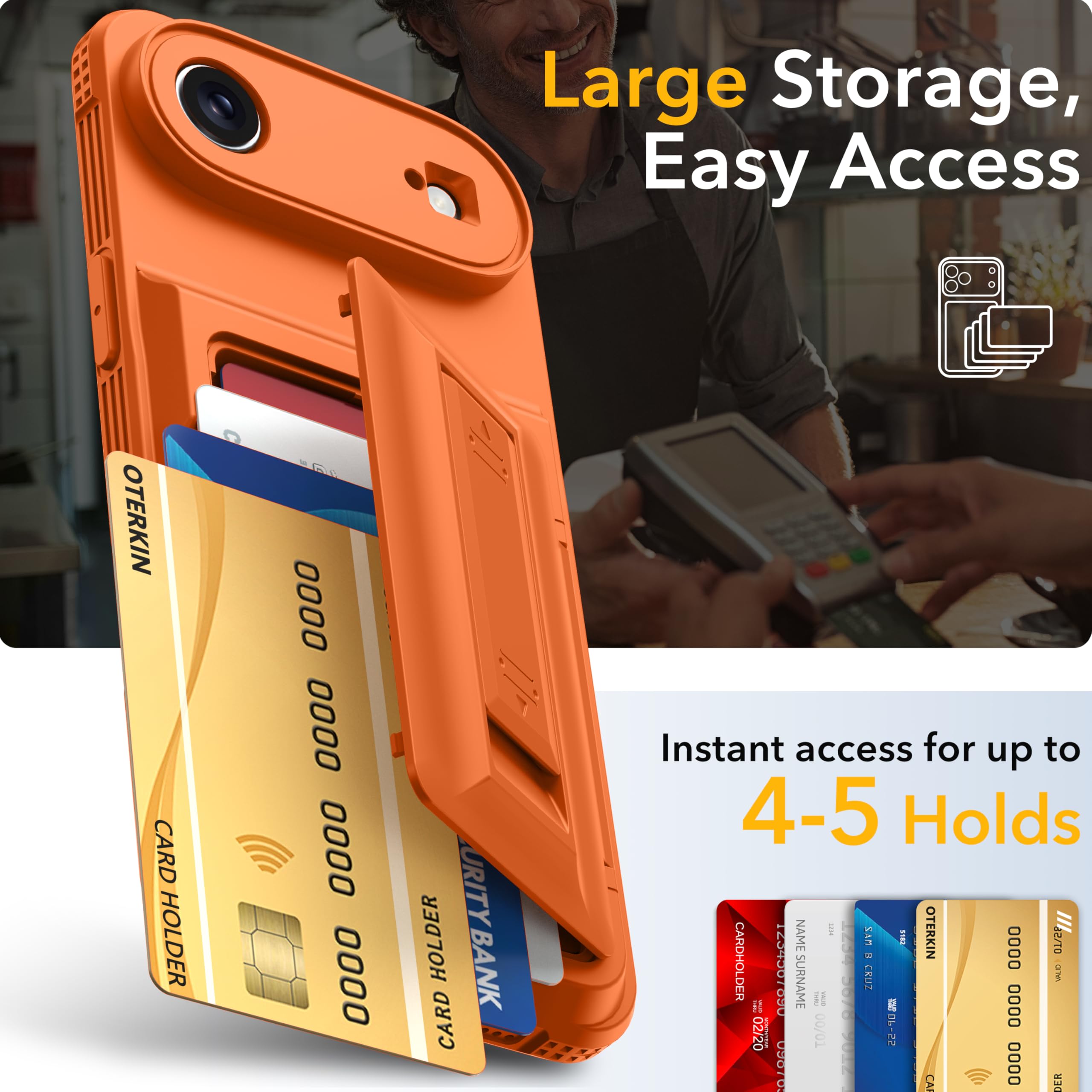 [RFID/NFC Blocking Technology] The Oterkin iPhone 17 Air wallet case features RFID/NFC blocking technology that securely protects against 13.56--MHz signal scanning, safeguarding your credit cards, driver's license, and IDs from electronic theft. Ideal for secure shopping, travel, and everyday use.