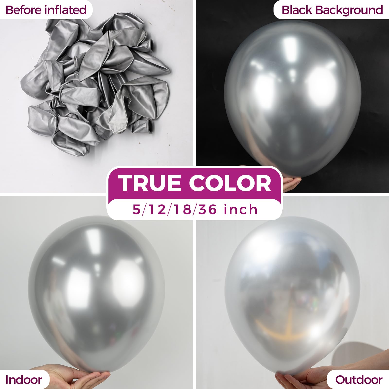 【Set Includes】- Each sets contains 100pcs silver party balloons of 12 inches and 1pcs silver ribbon (33 feet total).The right amount quantity and most suitable color for each party decoration.