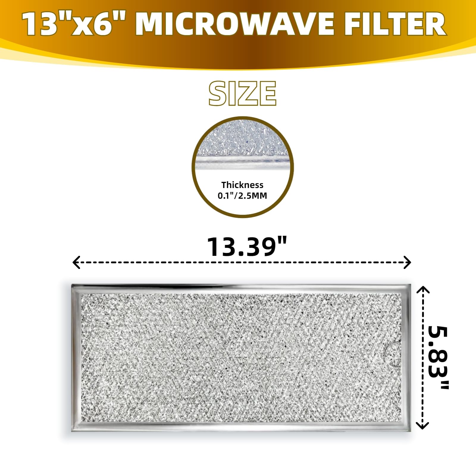 MICROWAVE VENT FILTER SIZE: microwave vent filter Replacement is approximately 13.39 x 5.83 x 0.1 inches (L x W x H)