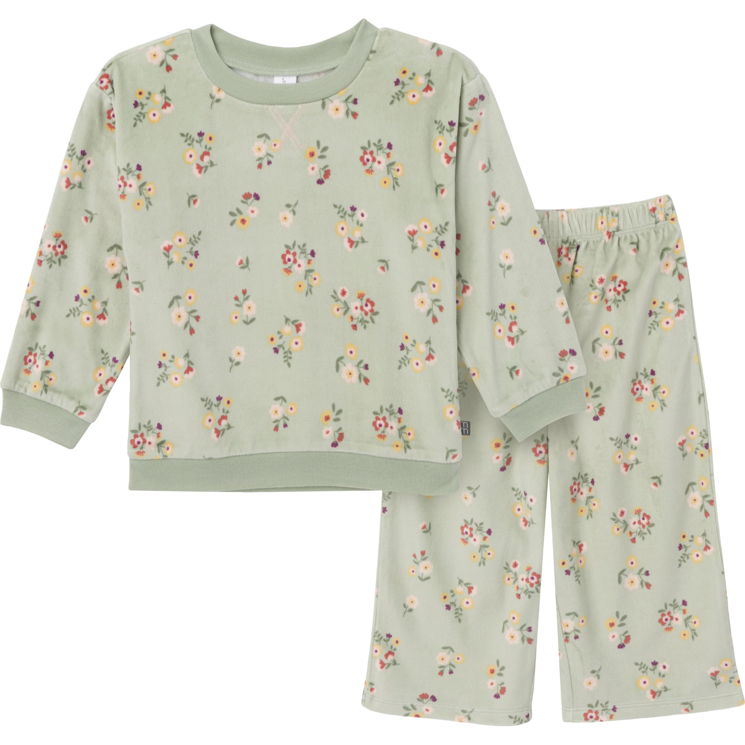 Description Crafted from very soft fleece, our baby or toddler top and pants pajama set provide a luxurious feel for your little one. With comfort-stretch ribbing on the pants' waistband and shirt hem, as well as at the neckline and wrists, they offer a snug yet flexible fit for your baby. Perfect for cooler nights, these pajamas are also fire-resistant, giving you peace of mind while your baby sleeps.
