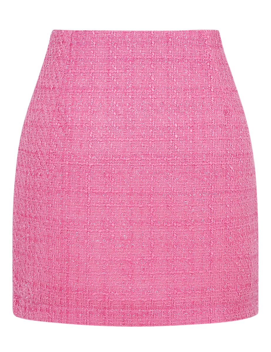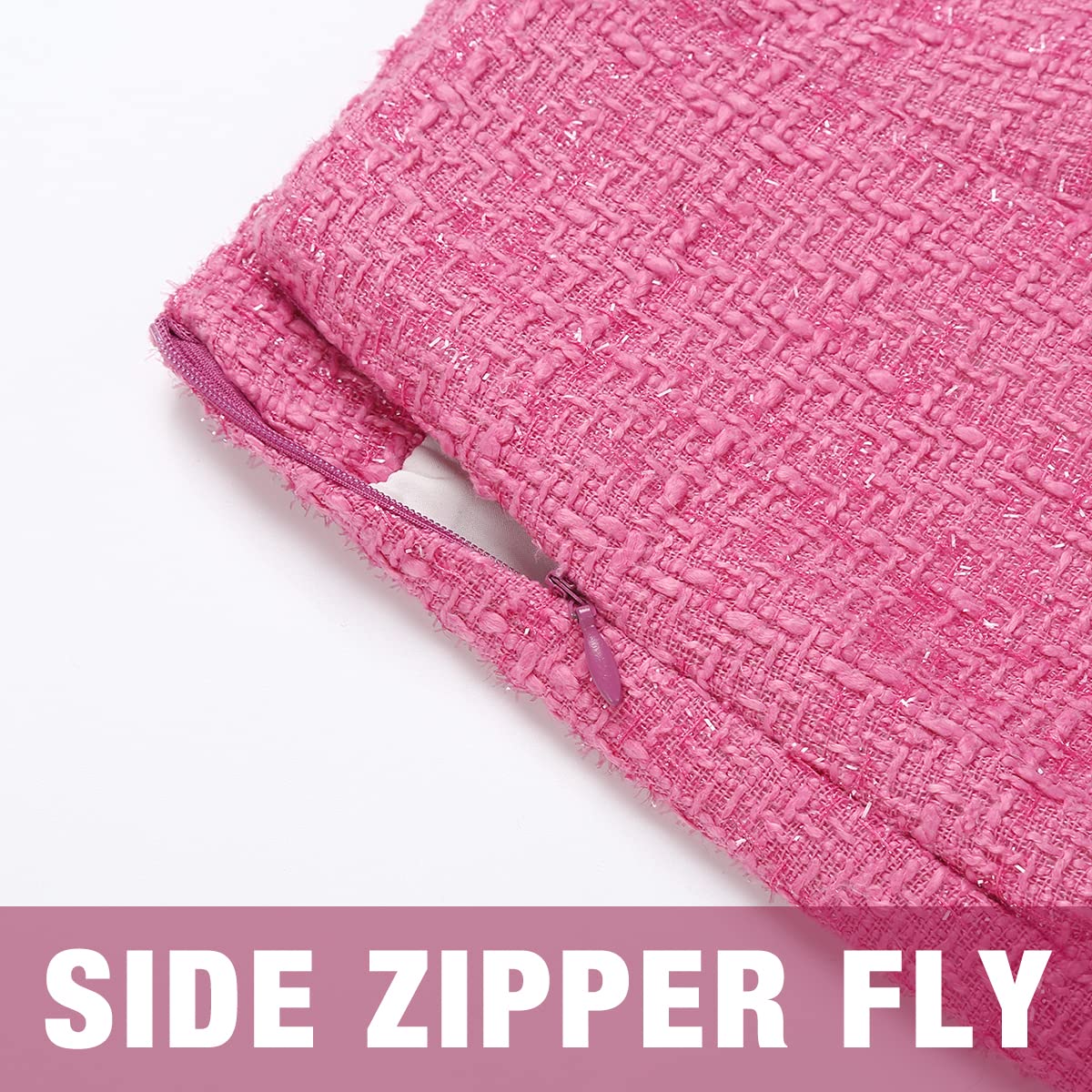 Features: High waisted, side invisible zipper fly closure, above the knee length