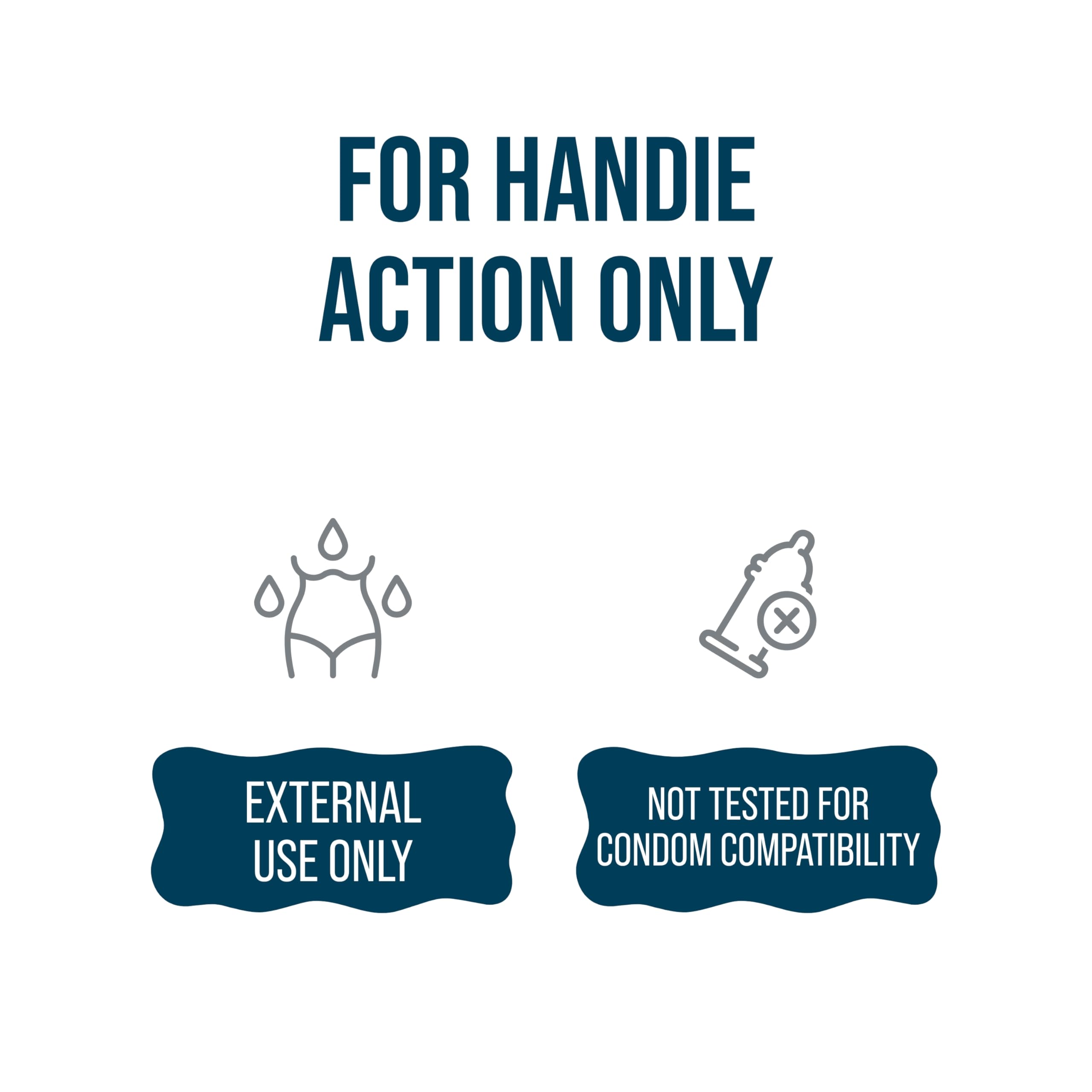 FOR HANDIE ACTION ONLY: Not recommended for use with condoms or as an internal lubricant