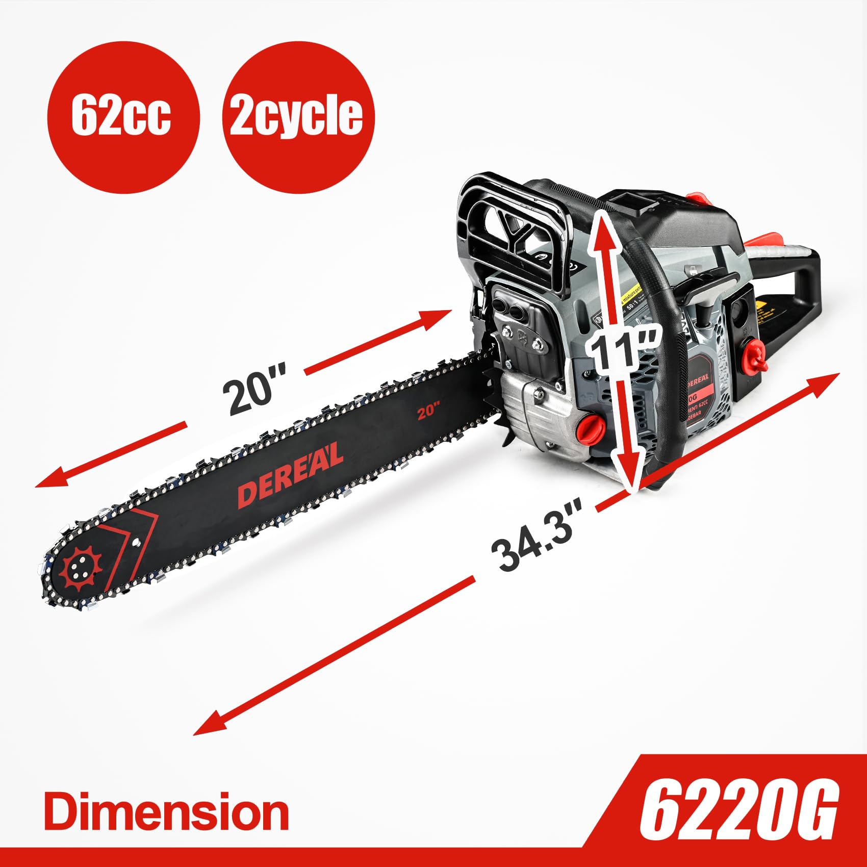High Performance--62cc 3.4hp powerful gas chainsaw delivers steady power to the 20-inch bar and low-kickback chain. The engine speed can be up to 8500 rpm. Ideal tool for cutting firewood and felling trees with a much higher efficiency