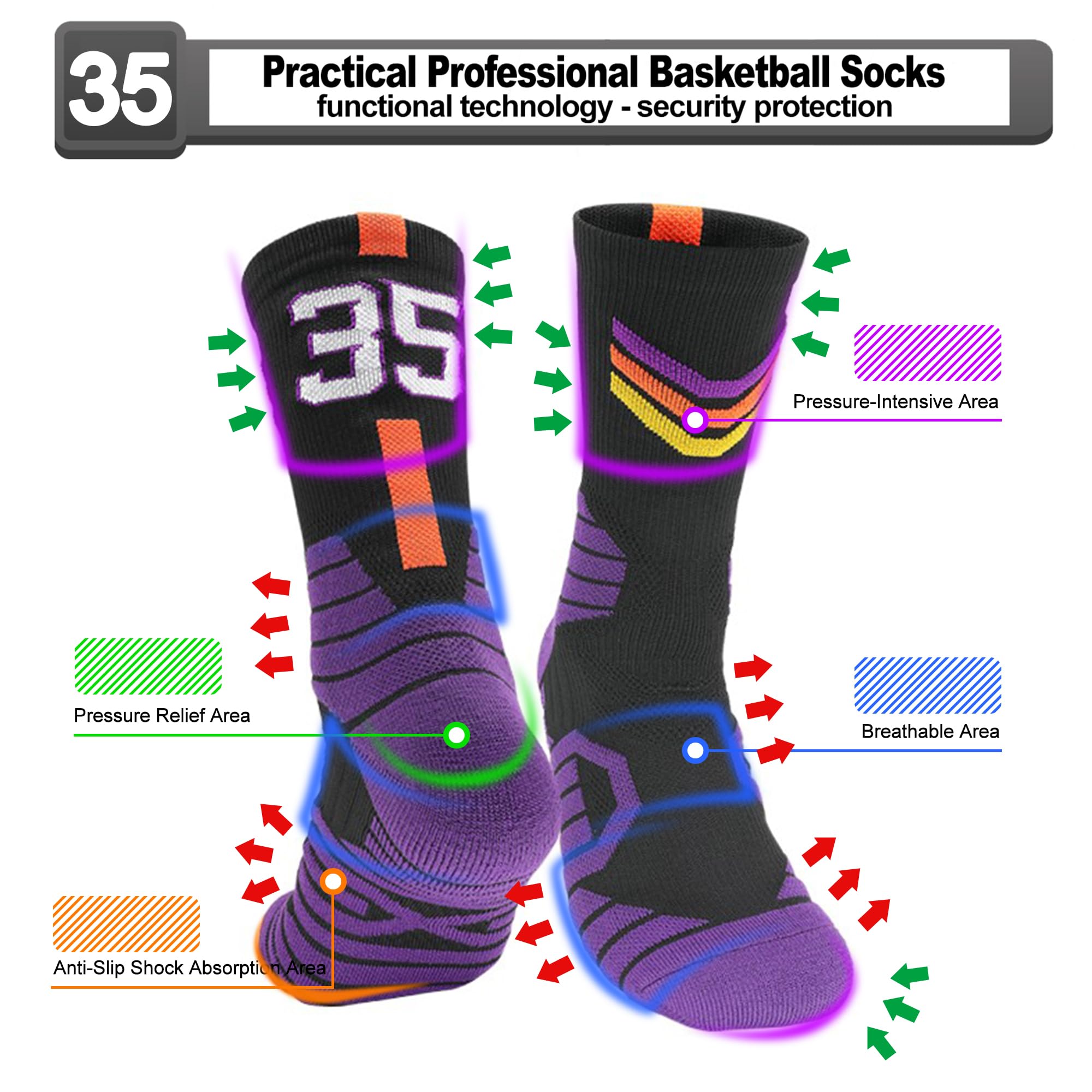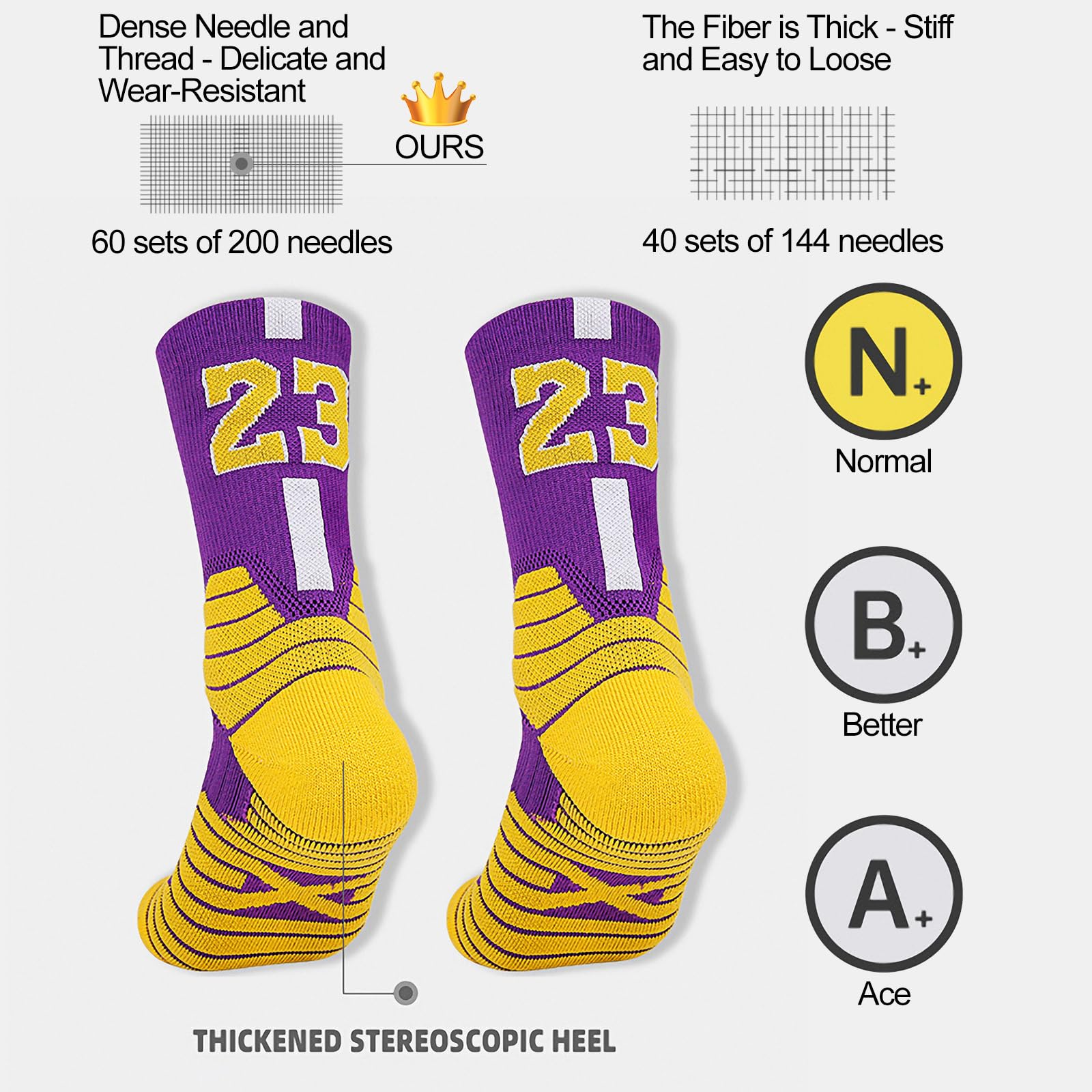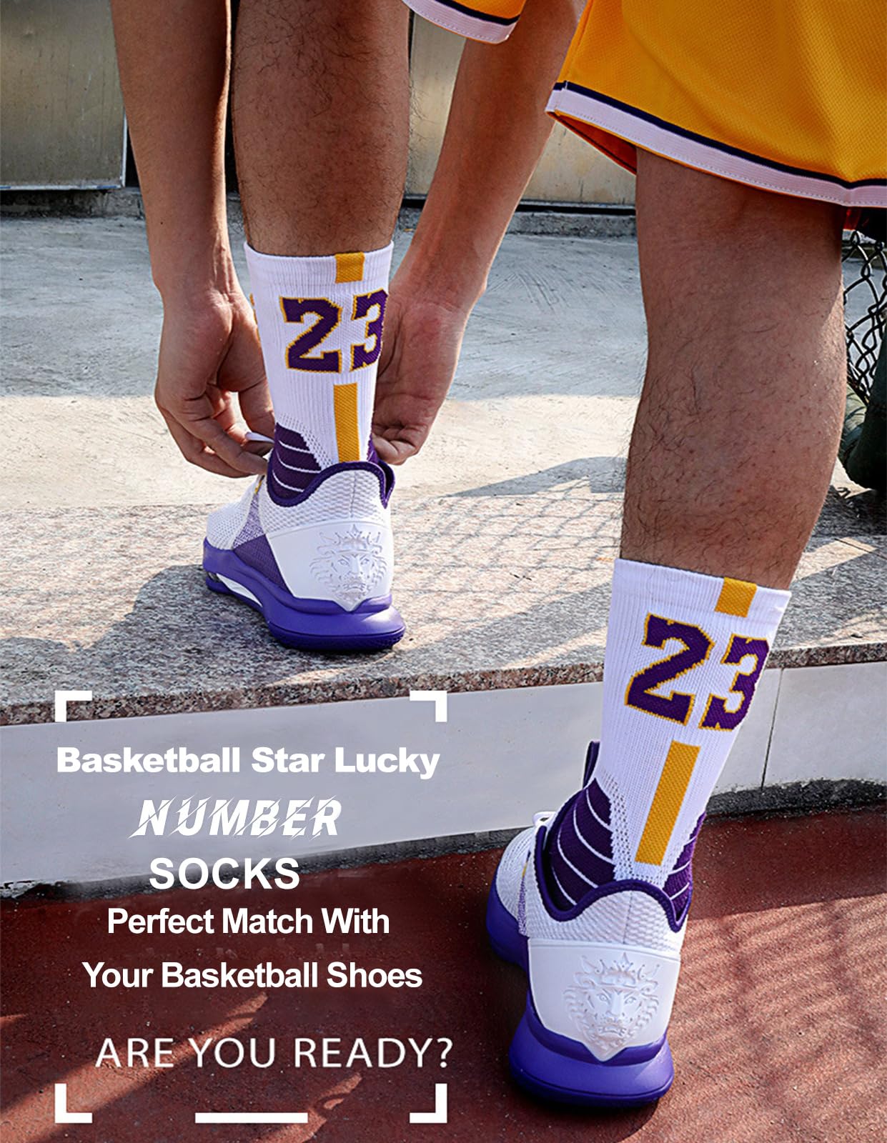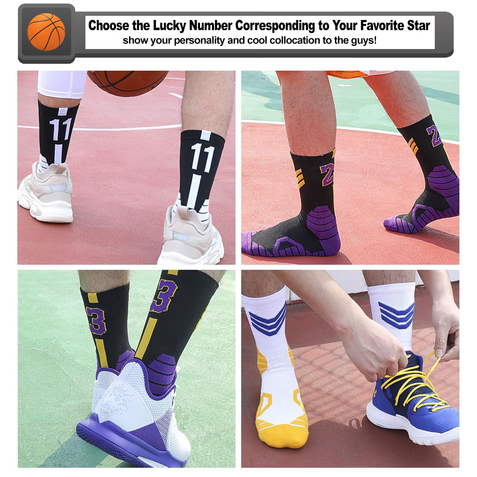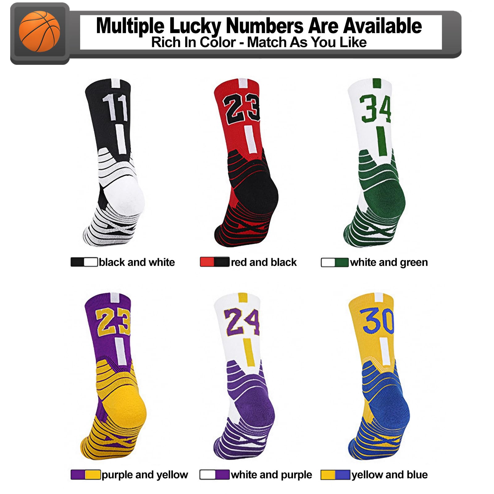 🏀 Exclusive Style - If you have an exclusive lucky number and favorite basketball star and team, then this pair of number socks is simply customized for you! Including 2 pairs of sports socks in different colors to match your cool sneakers. We have many different colors and numbers to choose from!