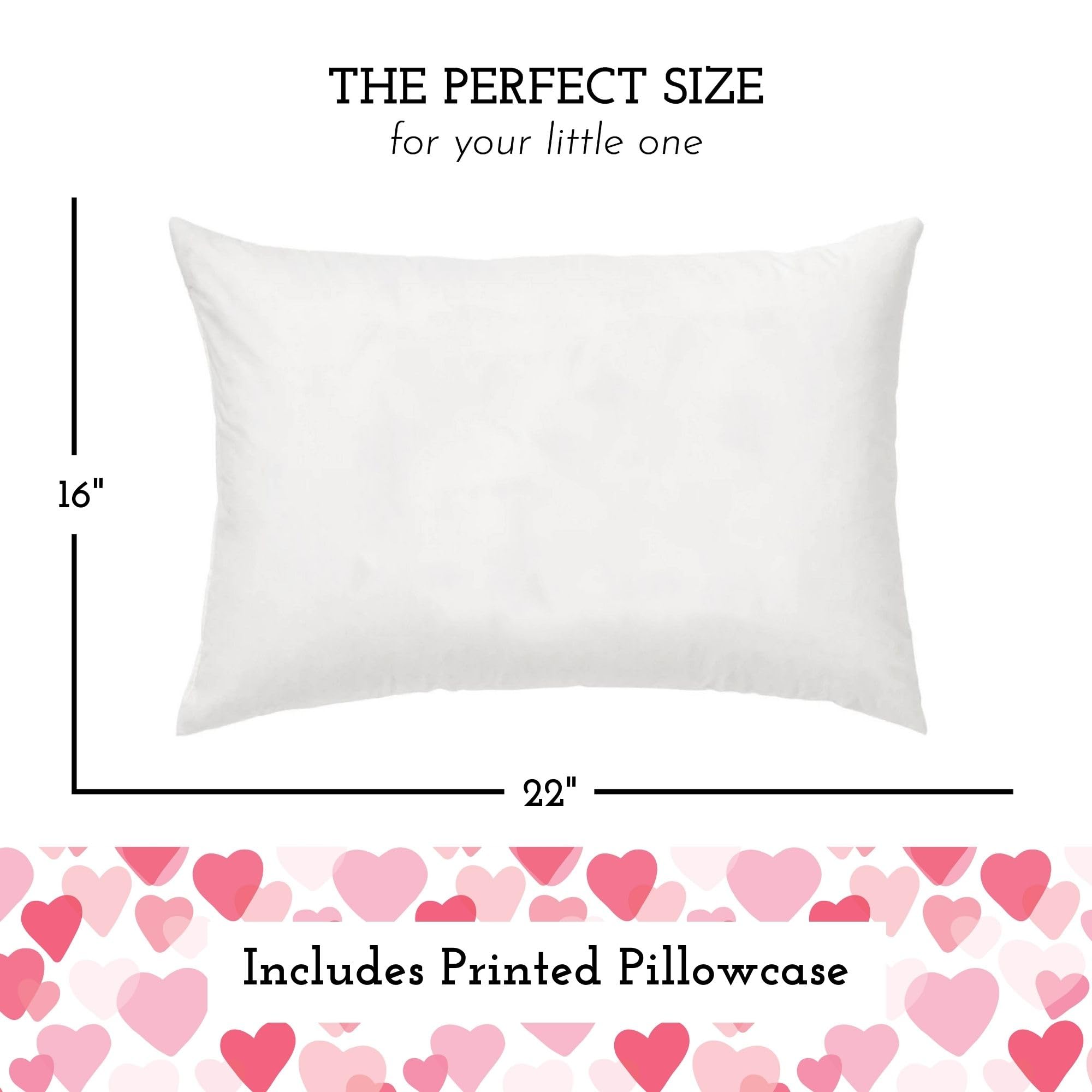 Youth Pillow with Pillowcase 16x22: This is the perfect pillow for your not-so-little kid! In between our toddler pillow and a standard pillow, our 16" X 22" youth pillow is the best pillow for children 4+, or toddlers that need something a bit larger! Comes in colorful designs that appeal to kids.