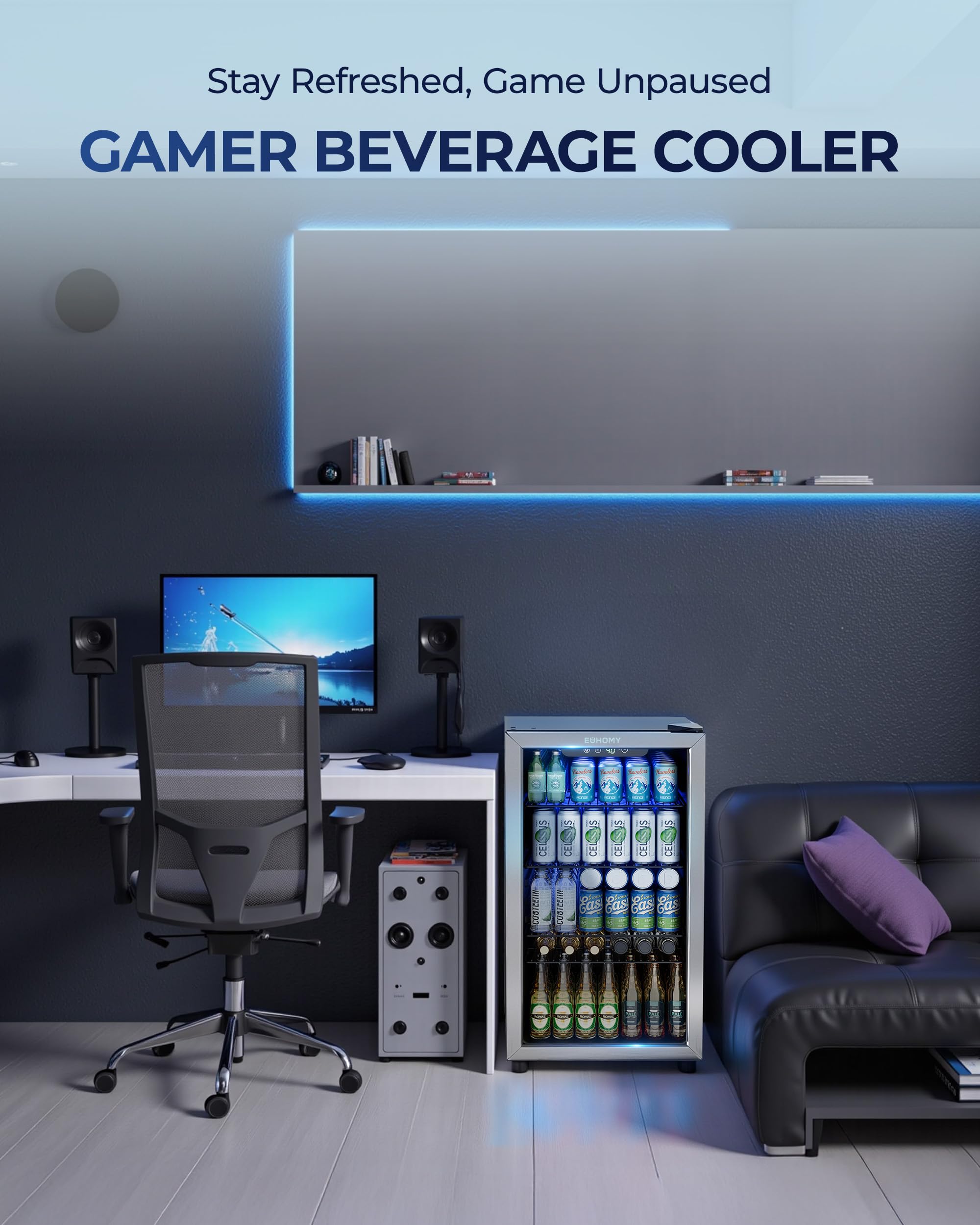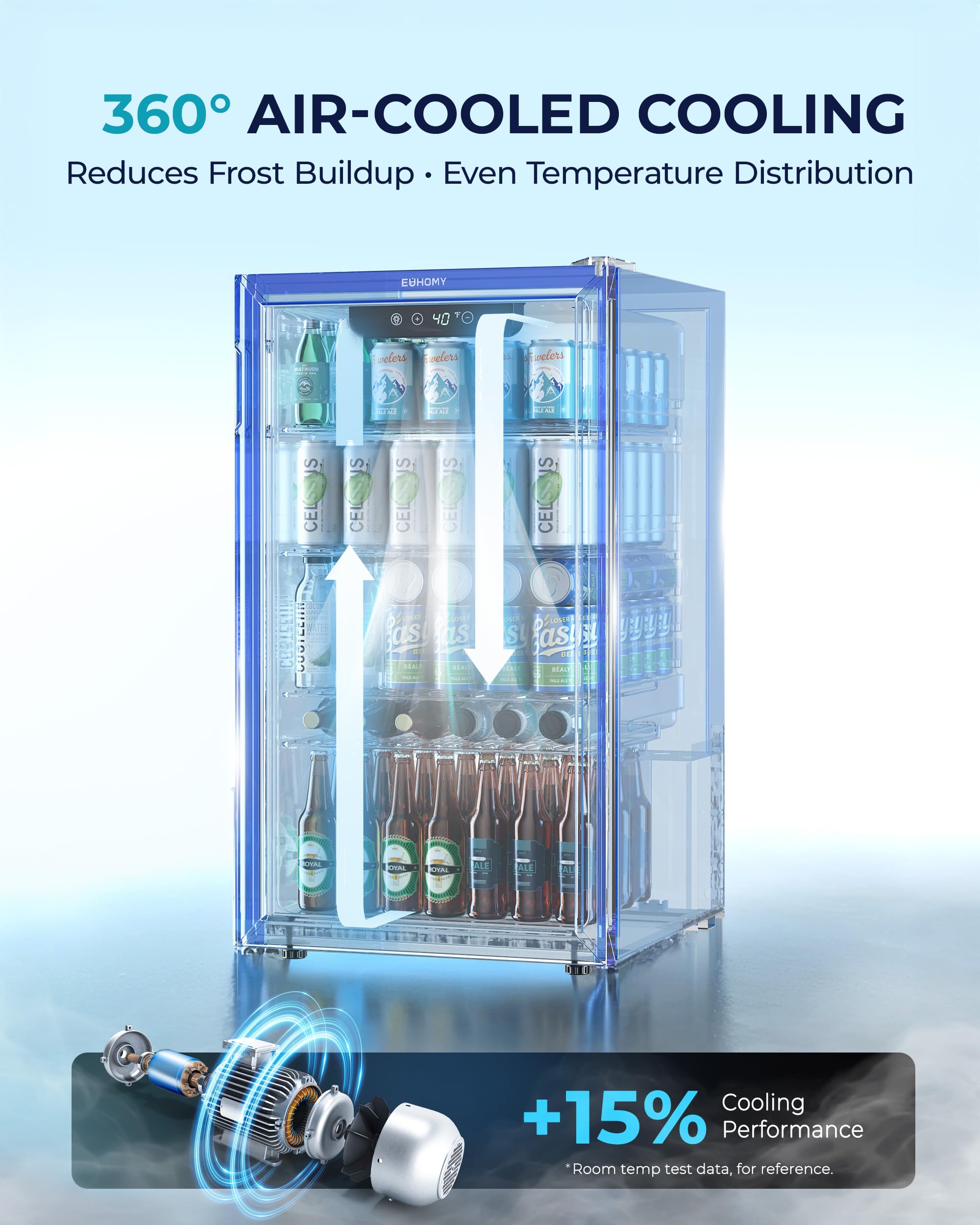 QUIET + ADVANCED COOLING SYSTEM - With a powerful compressor and internal air-cooled system, Euhomy’s mini fridge creates an evenly cooled space by ensuring that air flows throughout the entire beverage center.In addition, ultra quiet cooler of beverage cooling machine doesn’t affect your daily rest or working. With our cooler, you won’t just enjoy cold drinks, you’ll have a quiet atmosphere too