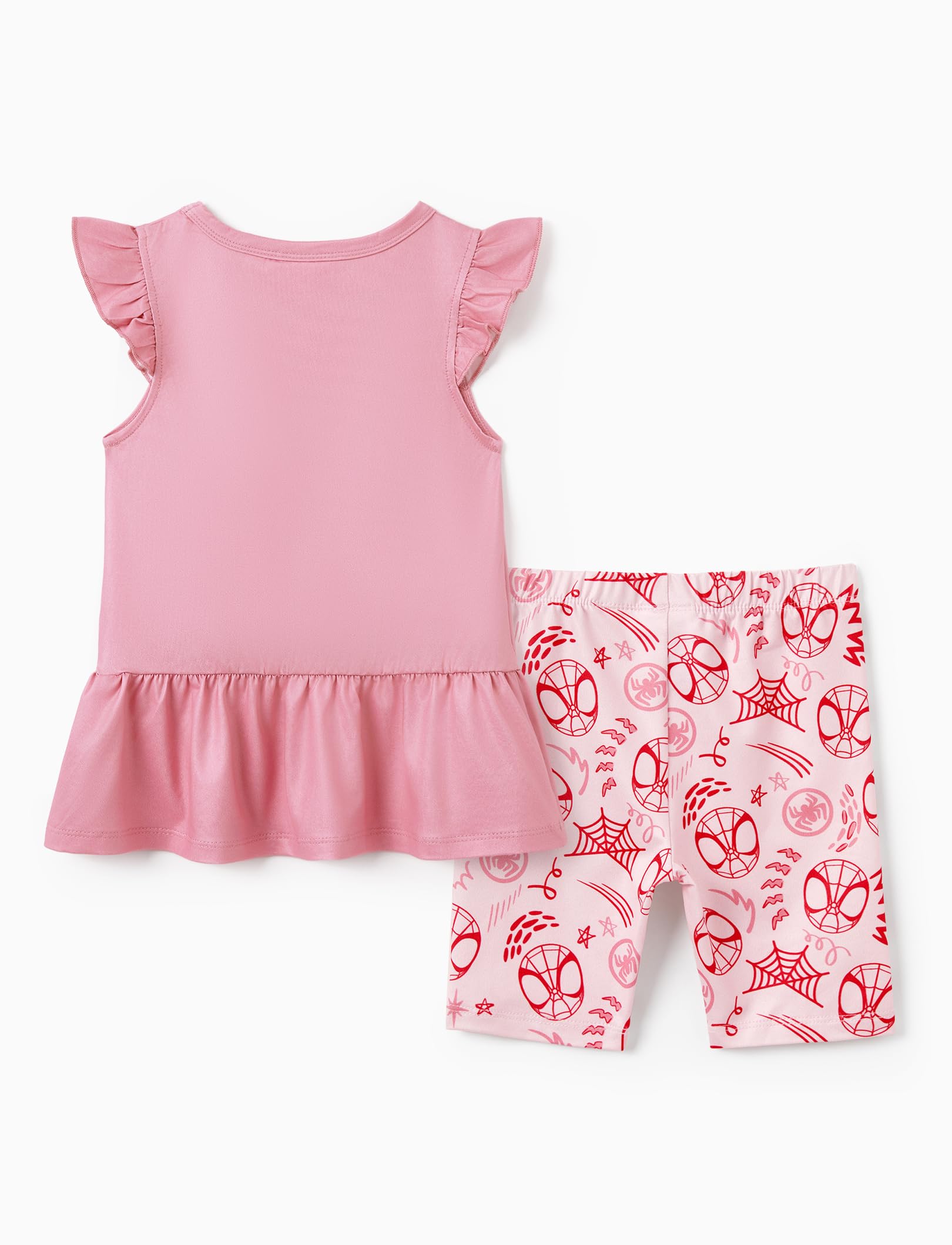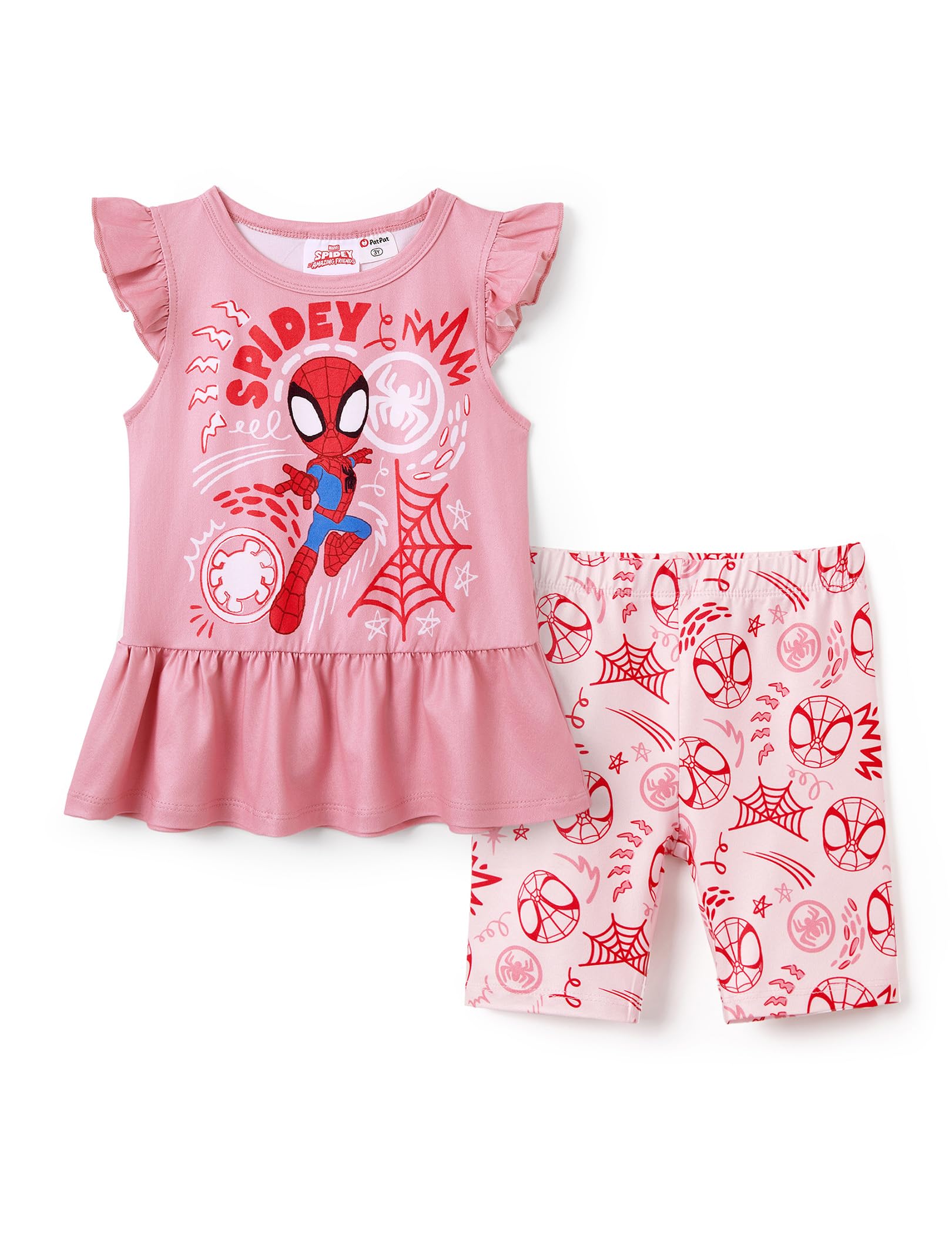 【Unique Design & Attention to Detail】This coordinated two-piece spiderman outfit blends superhero fun with playful touches. The girls spiderman outfit features delicate ruffled cap sleeves, and the printed leggings ensure full coverage and freedom of movement. It’s a stylish daily look or a fun spiderman costume for little girls clothes