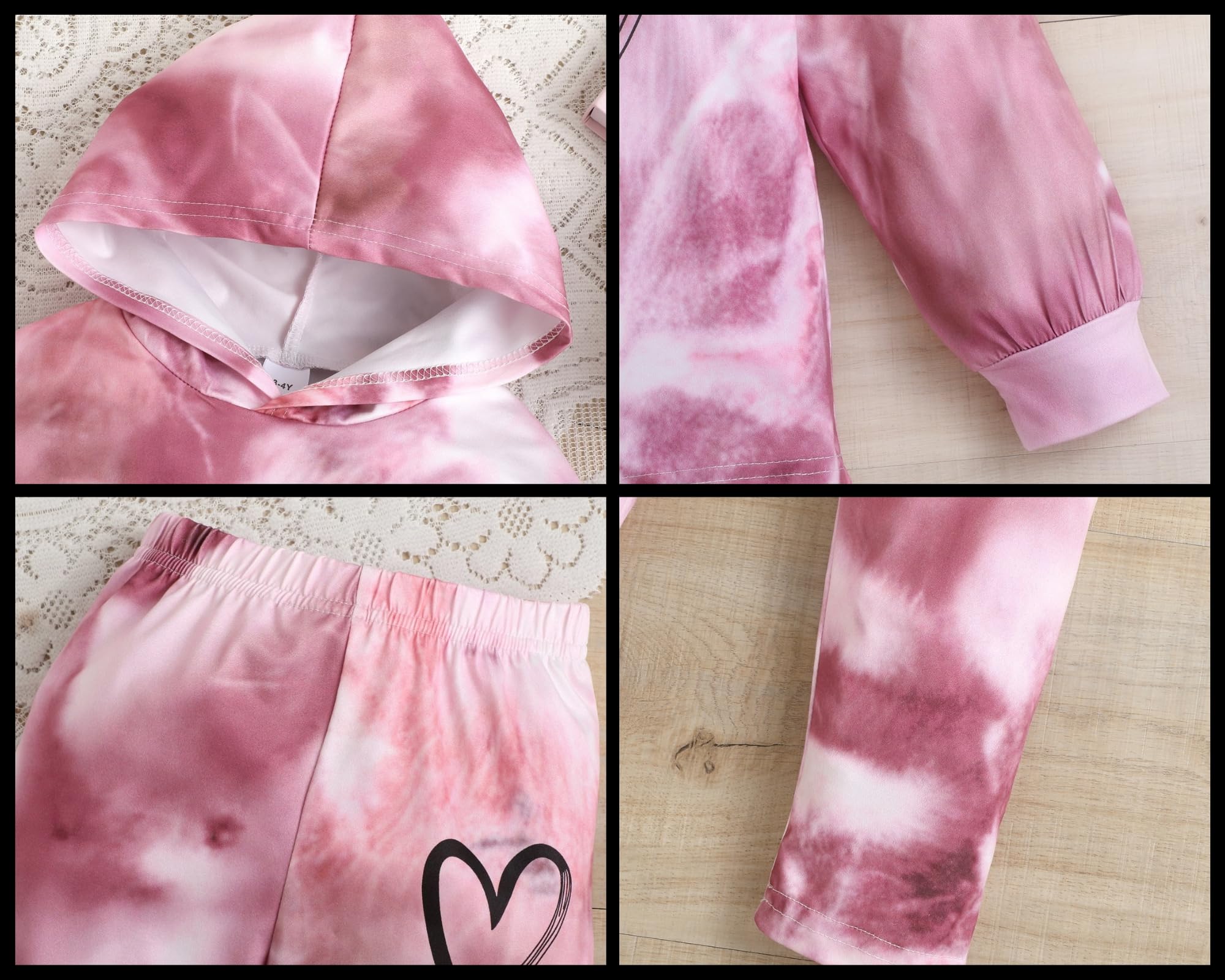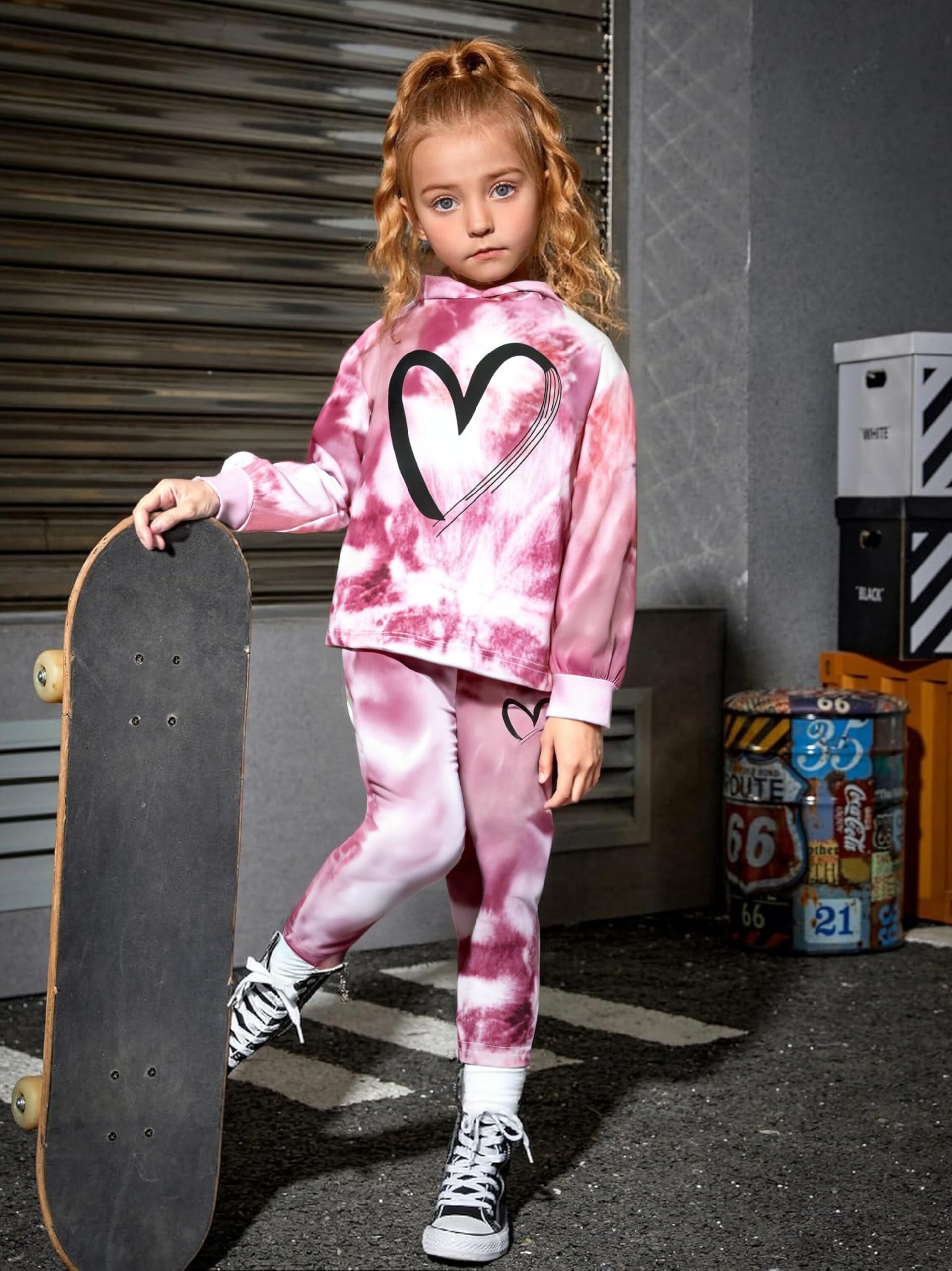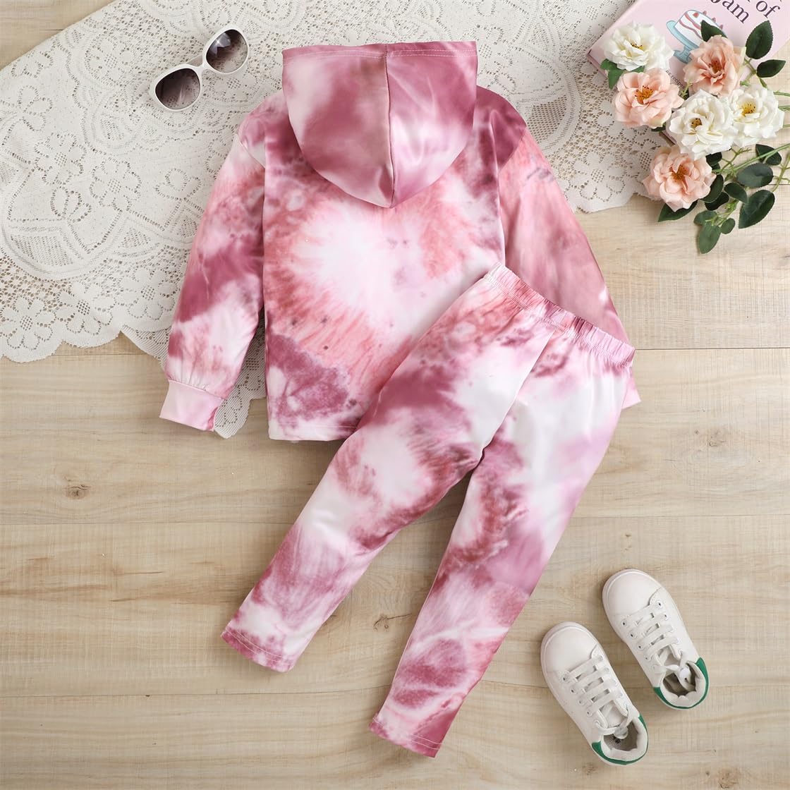 💖 Fashion Design : 2-6T Toddler Baby girl fall outfits, tie dye hoodie long sleeve sweatshirt and pants, unique heart graphic make your little girls look adorable and fashion, will be get lots of compliments.