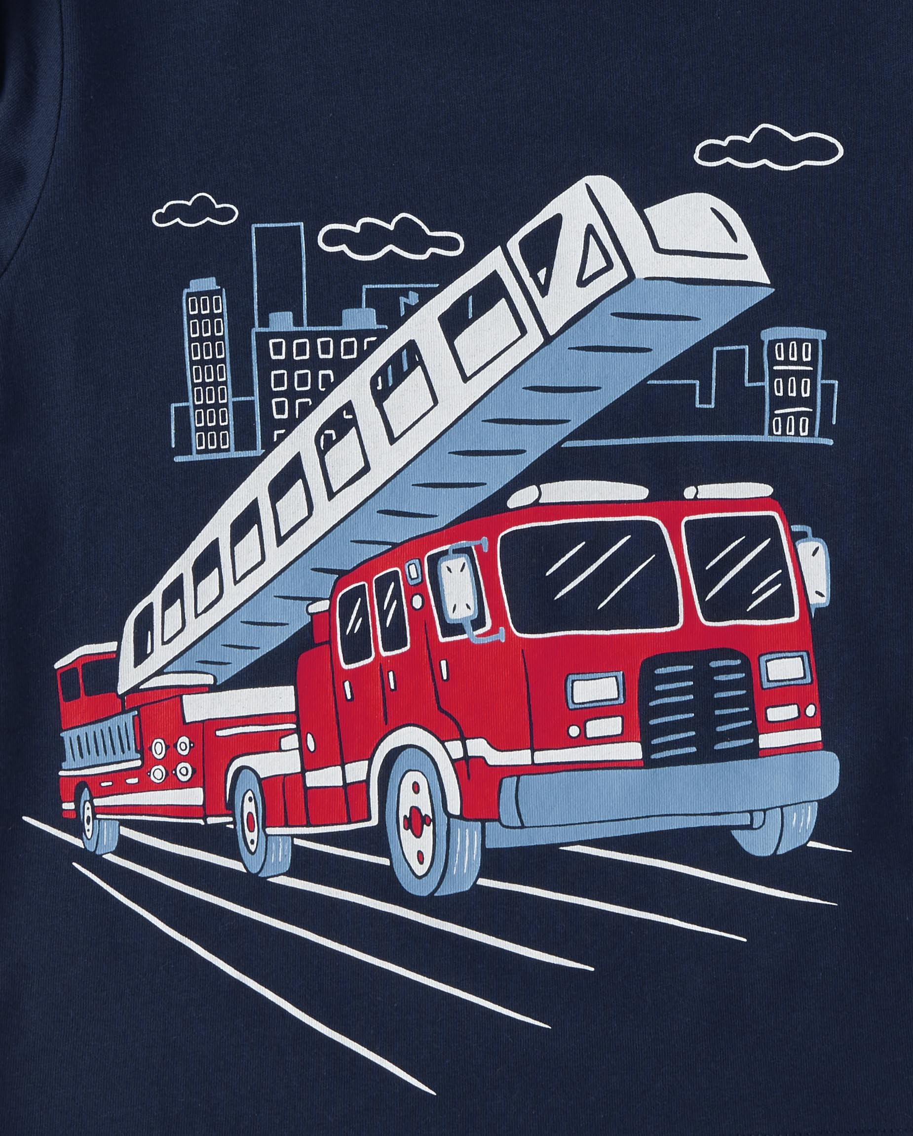 MULTIPACK — 2-pack of graphic tees: 1 style with fire truck graphic design at front; 1 style with truck graphic design at front