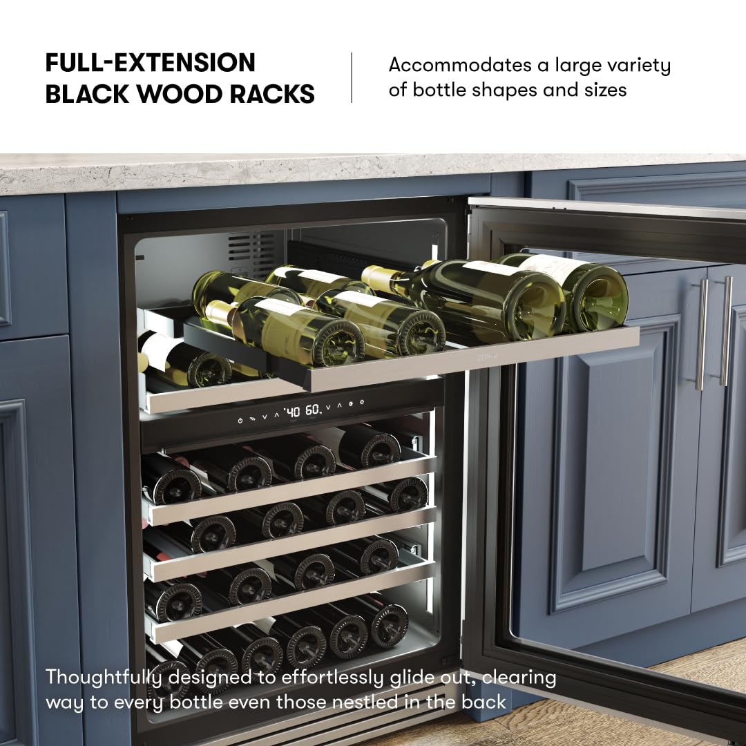 Full-Extension Black Wood Racks. Full-Extension Black Wood Racks are thoughtfully designed to effortlessly glide out, clearing way to every bottle even those nestled in the back.