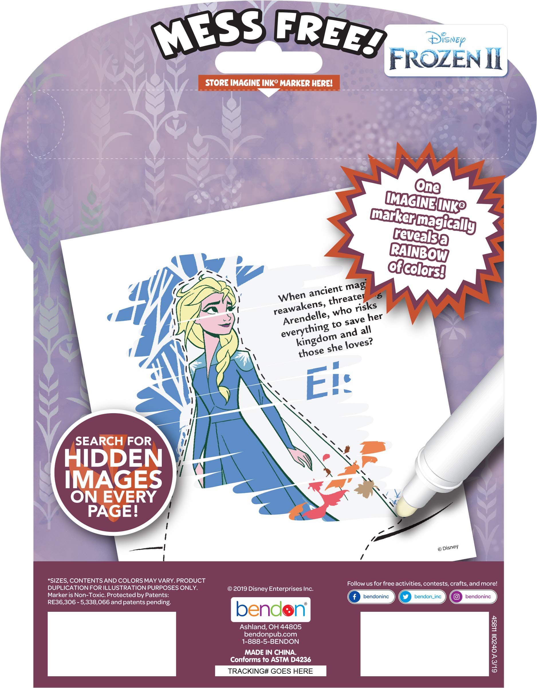 Watch a rainbow of colors appear like magic with Bendon's Disney Frozen 2 Imagine Ink Magic Ink pictures! Artists of all skill levels will love finding Elsa, Anna, Olaf, and their friends hidden across 24 magic reveal pages. Its compact design makes it perfect for travel, too! Designed to be used with the included Imagine Ink Marker; a clear, non-toxic marker that will not visibly mark most other items. This is an official Disney licensed product, accept no substitutions! Ideal for children ages 3 and up.