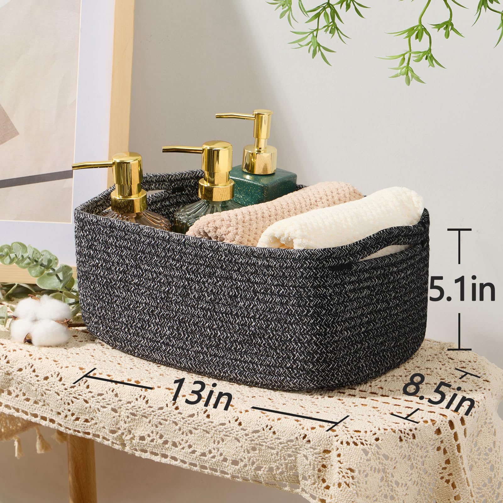 [ Compact Size ]: With dimensions of 13 × 8.5 × 5.1 inches, this rectangular basket is designed to accommodate most small household items. Each set of 3 pieces can be sorted to store cosmetics, jewelry, baby diapers, towels, remote controls, keys, credit cards, wallets, charging cables, toys, snacks, paper towels, and more
