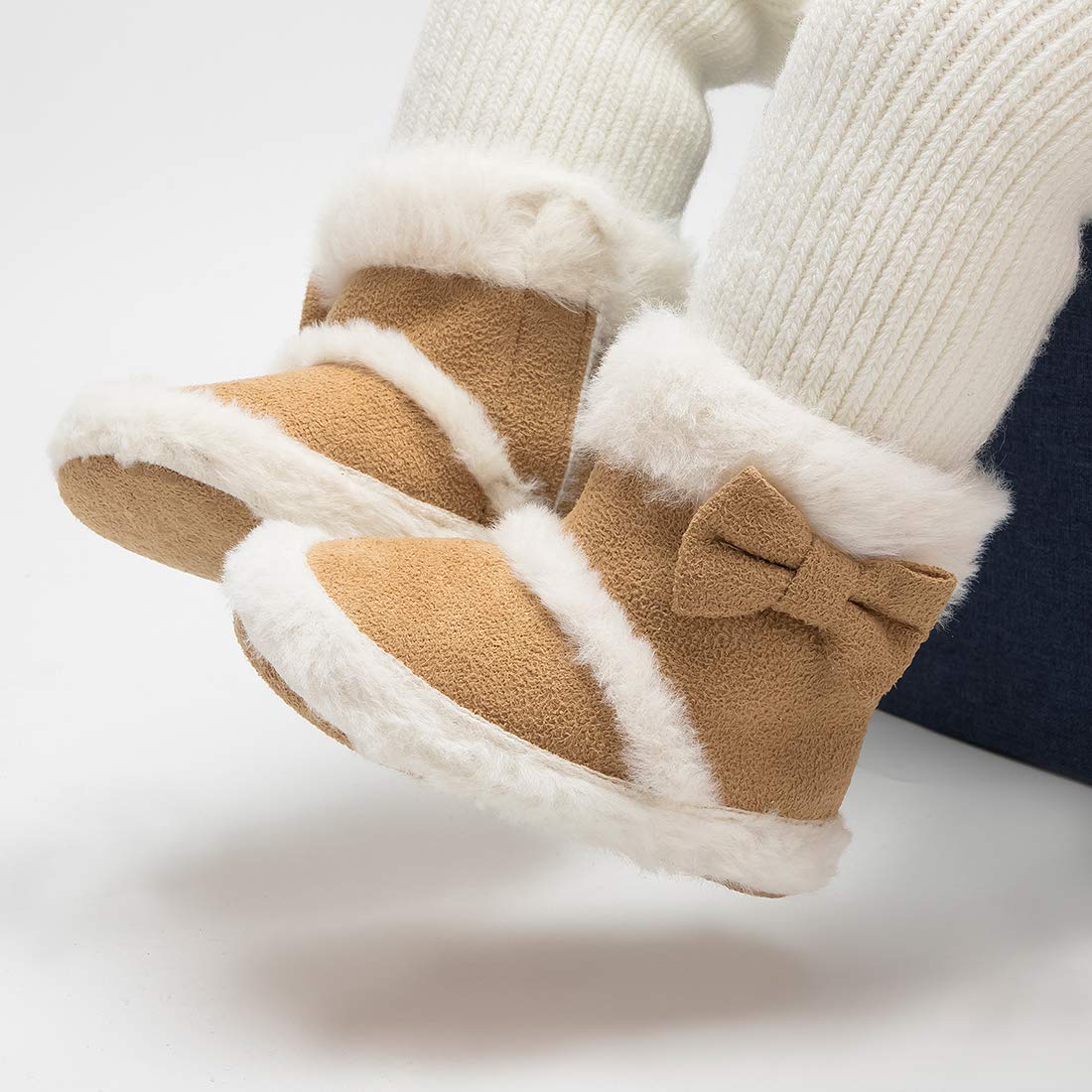 Hook-Loop Design: This winter snow boots are designed with adjustable hook-loop. It can be adjusted according to the baby's feet. Beautiful bows and sparkly sequins, cute fashion design