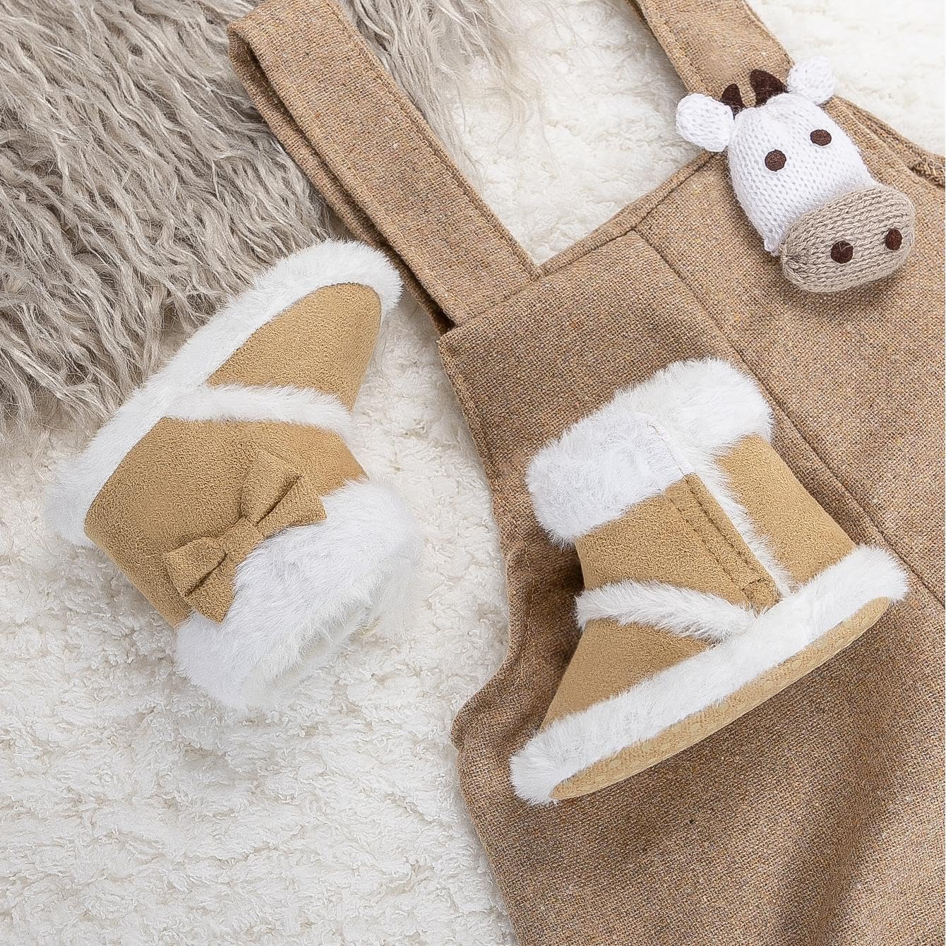 Soft Lining: Made of cotton and leather material. The long fluff inside are elastic and soft, will not bind the baby's movement. The material is non-irritating substances, let the baby away from chemical substances