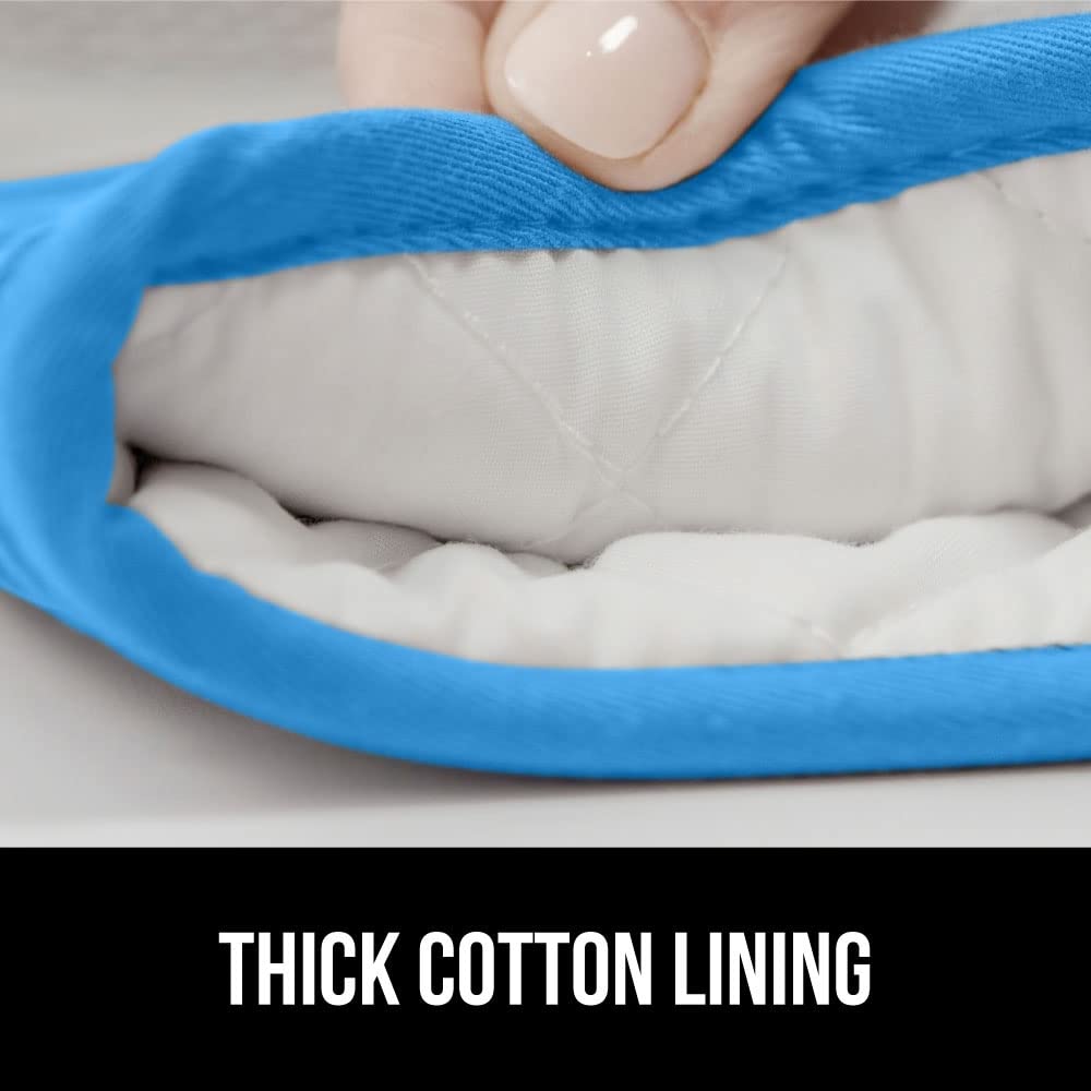 THICK COTTON LINING THROUGHOUT: stay comfortable while you cook; soft cotton lining offers additional protection and comfort, and feel simply amazing; plus, silicone is flexible and conforms easily to your unique grip