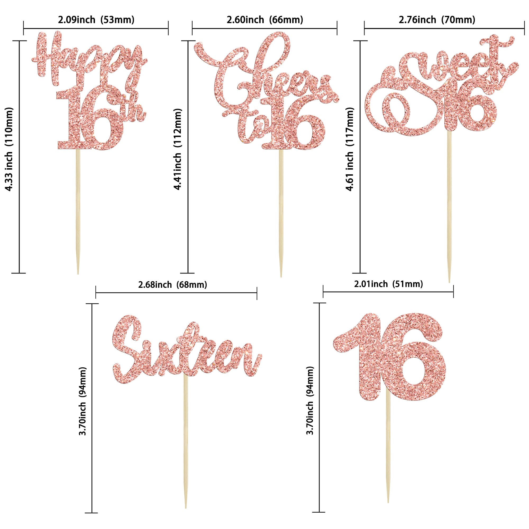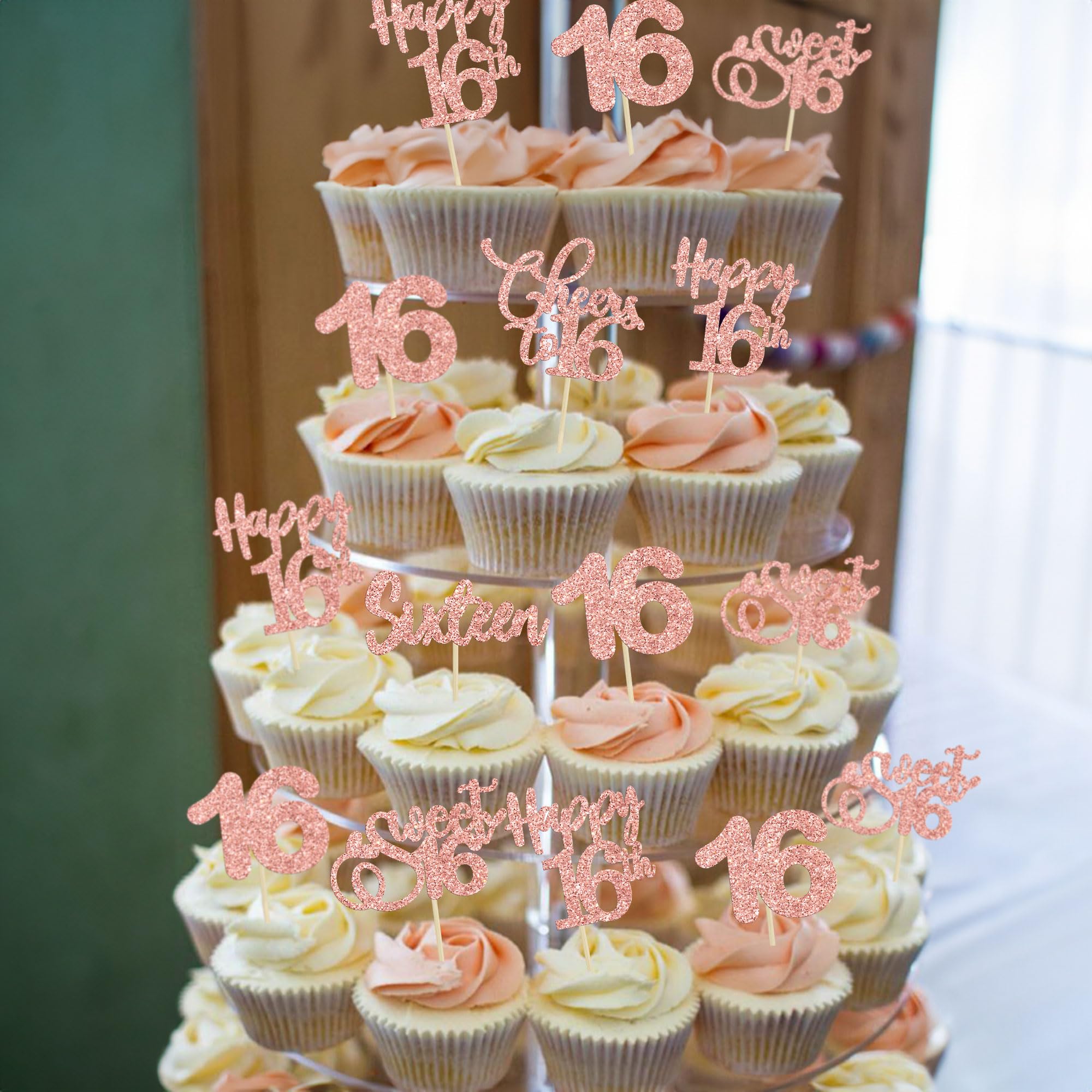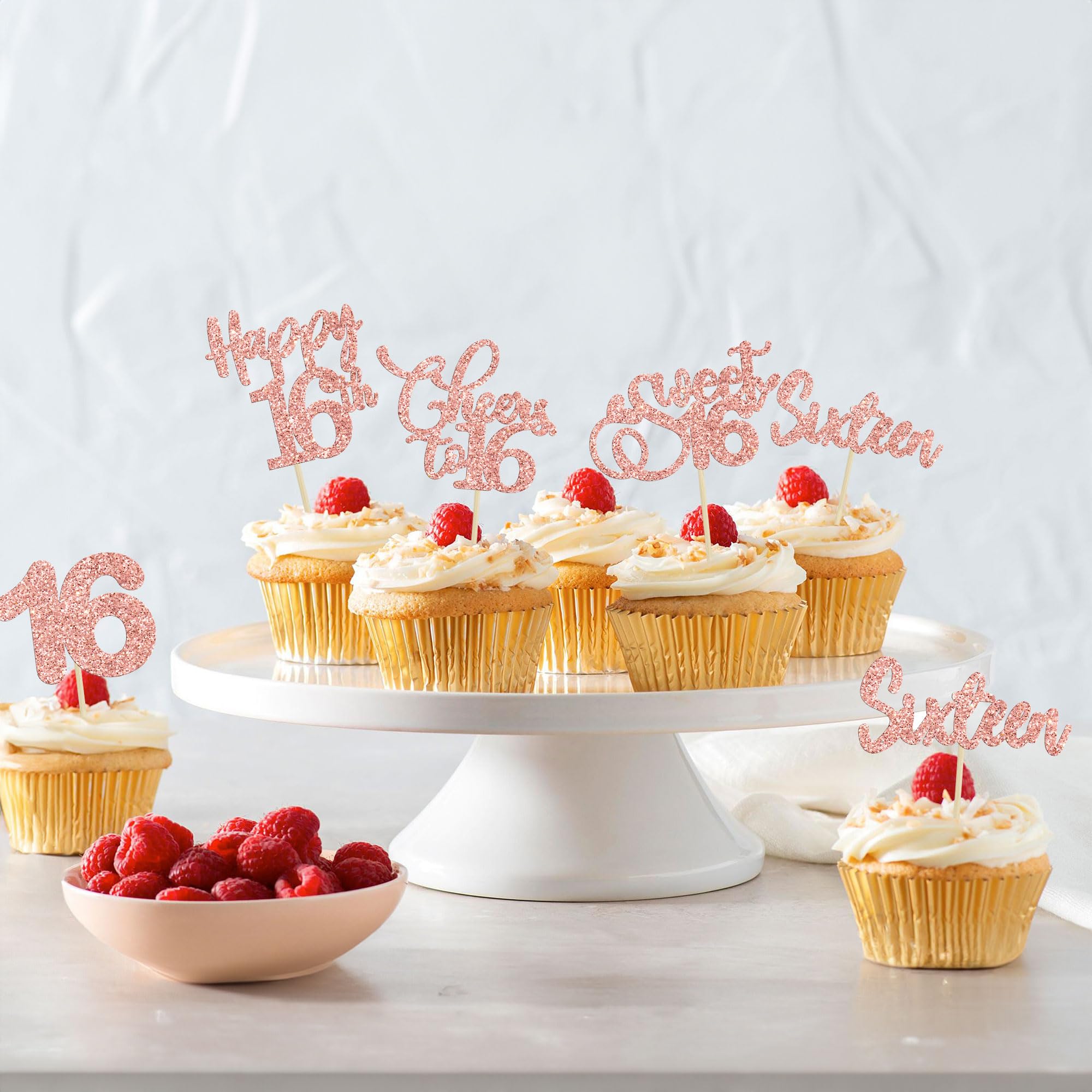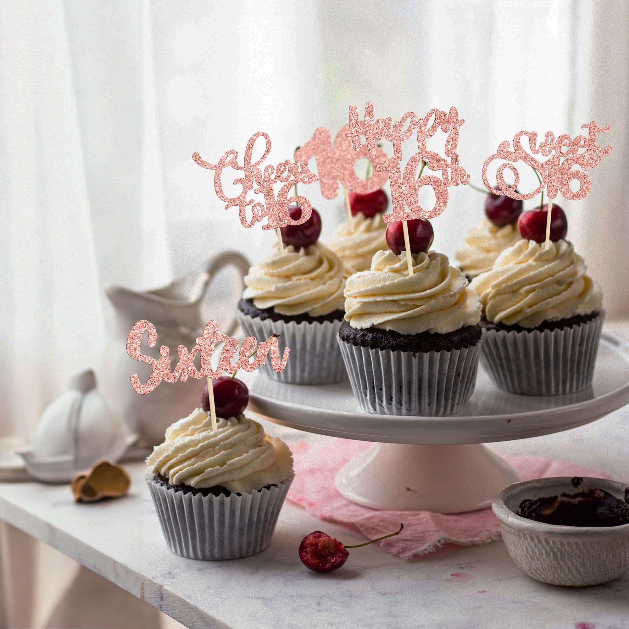 💖【No Assembly Required】: 30Pcs 16th Birthday Cupcake Toppers can put in the cake directly! These 30Pcs 16th Birthday Cupcake Toppers save your time and super easy to use. You can easily dress up your 16th theme cakes, yes! but don't stop there, put them into desserts, cookies, fruit pieces, appetizers, muffins and so much more!