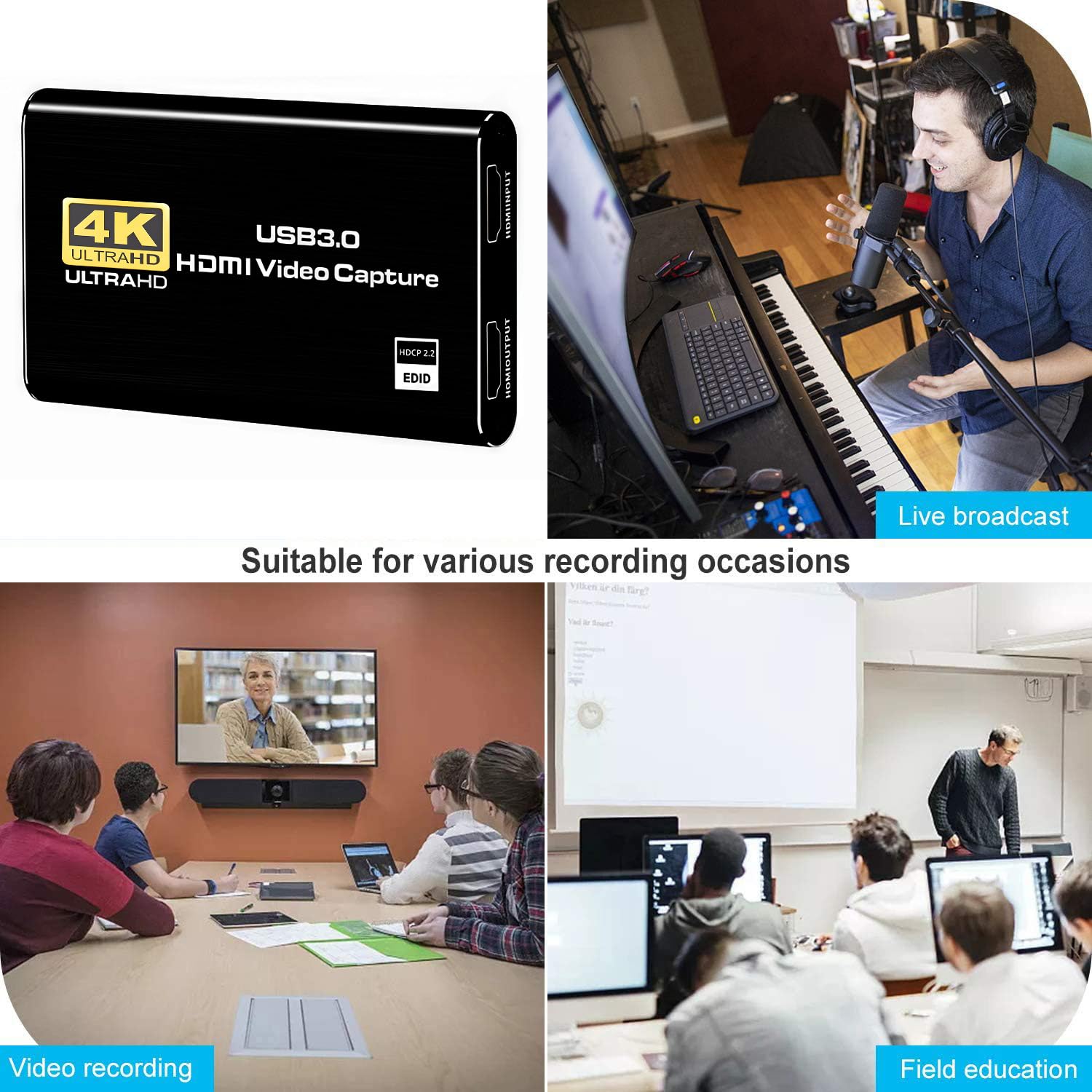 【4K HDMI Video Capture Card】Capture resolution up to 1080p for video source and it is ideal for all HDMI devices such as PS4, PS3, Xbox One, Xbox 360, Wii U, DVDs, DSLR, Camera, Security Camera and set top box.