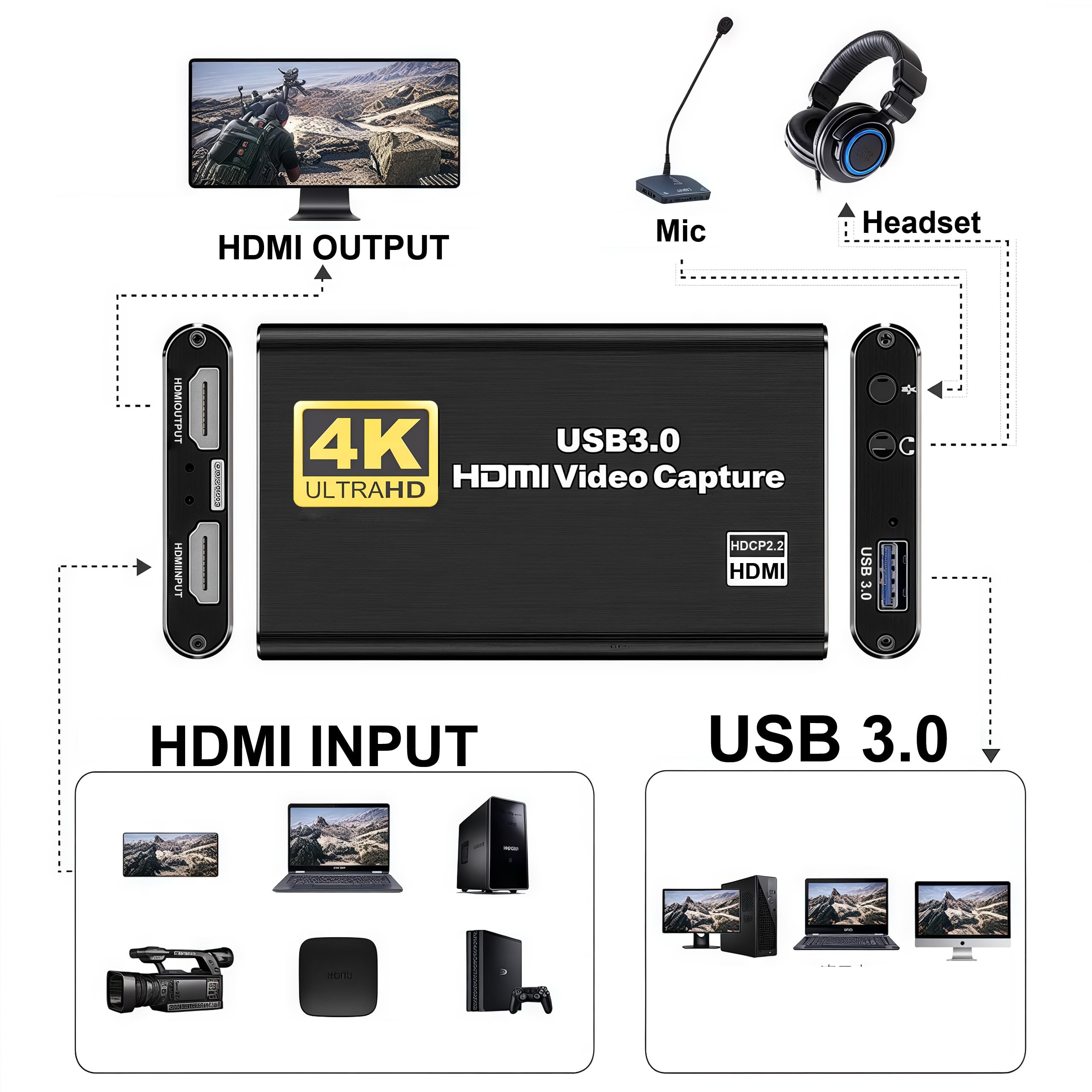 【InBox】IN BOX: 1x 4K HDMI Video Capture Card (USB 3.0), 1x USB cable, 1x instruction manual. We also offer 24-hour customer service and a one-year limited .