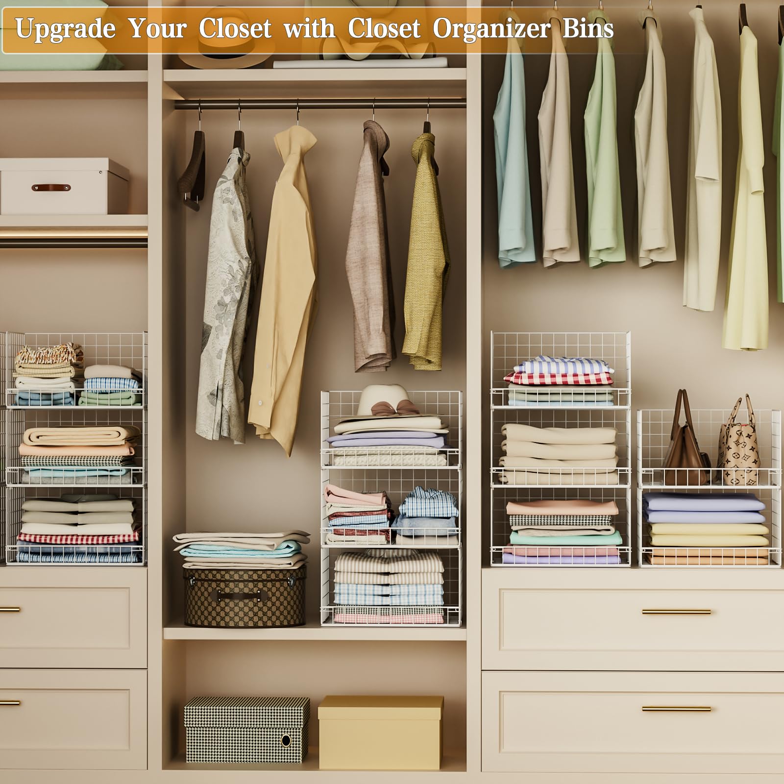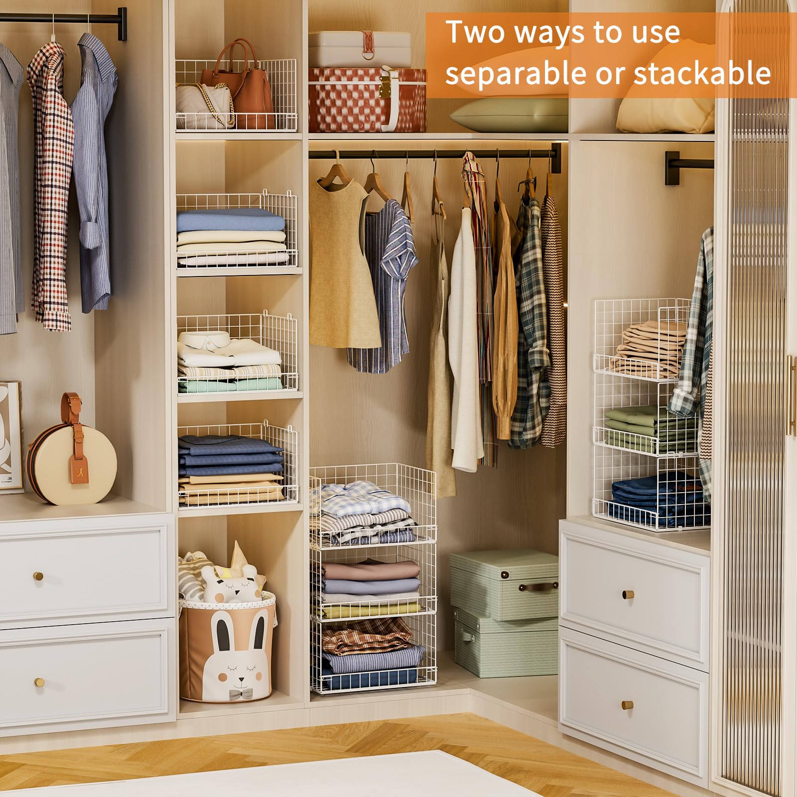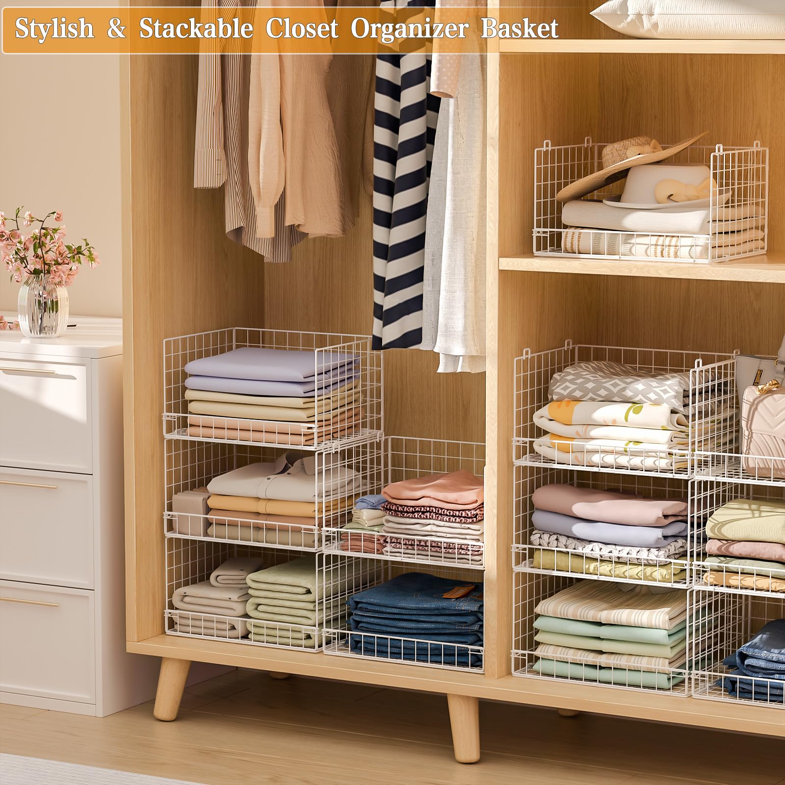 【Sturdy Iron Mesh】Made of premium iron mesh,these closet storage bins are sturdy,durable,breathable,visible,no smell and washable.Would not bend or damage like plastic or cloth storage baskets. You can count on it is strong enough and has a good craft.