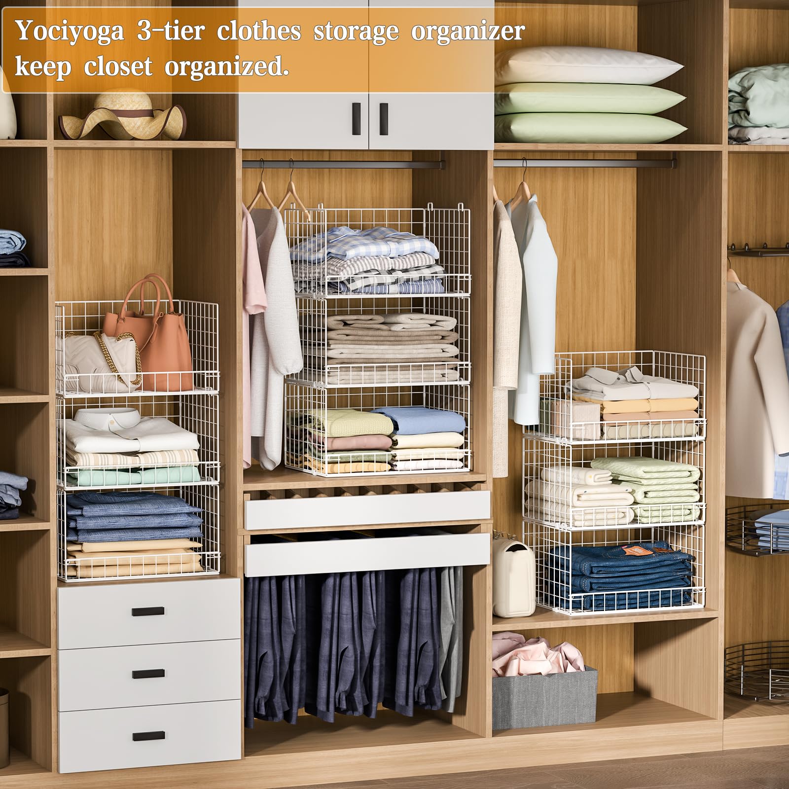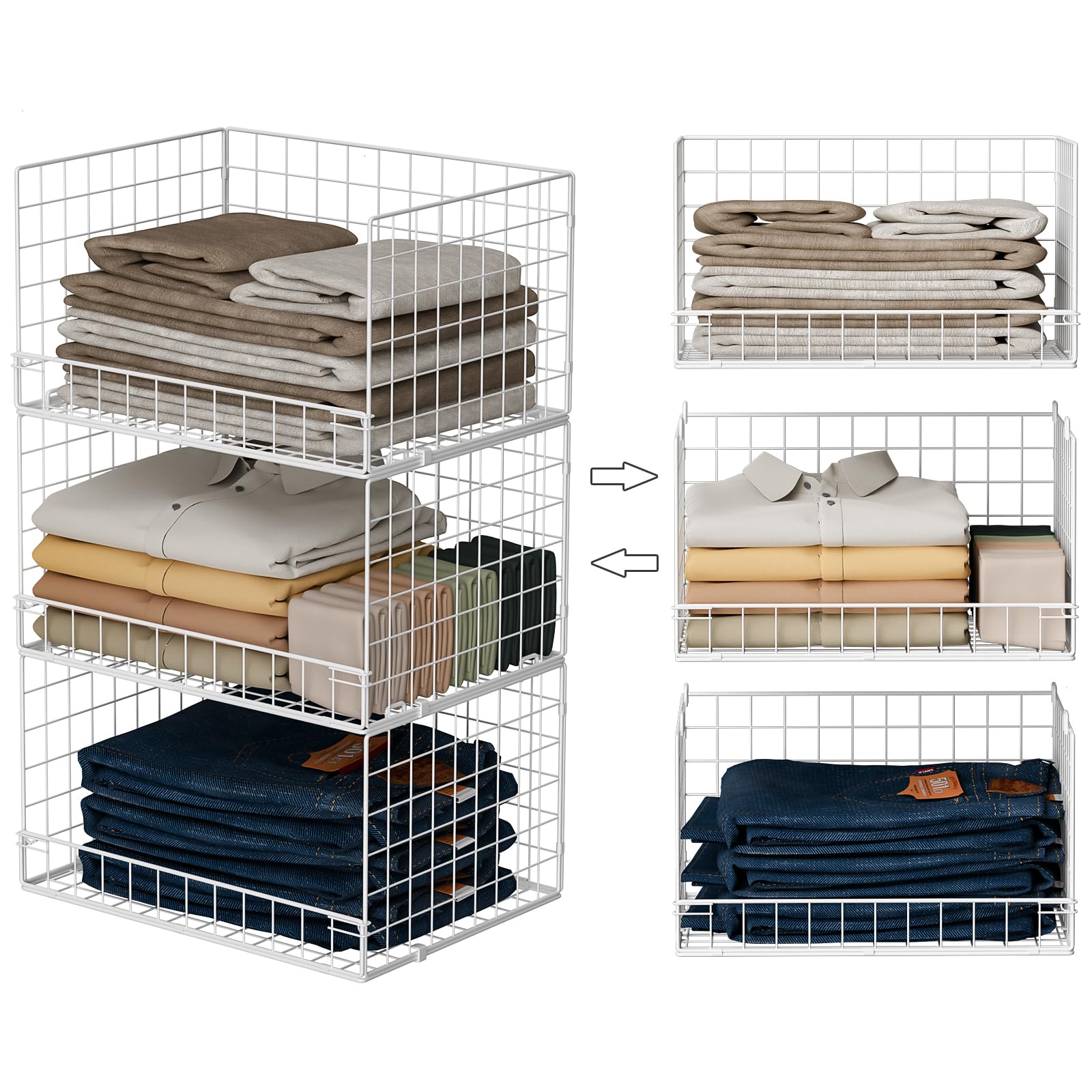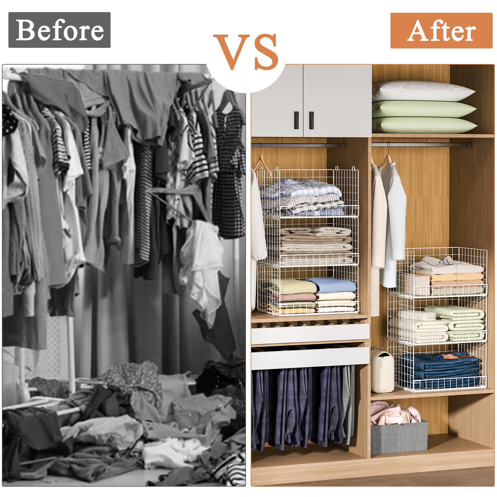 【Stackabe and Foldable】These collapsible closet shelves organizer are stackable and foldable.And can fold them to put in a corner without taking up space.You can stack multiple units together or use only one to meet your different needs.
