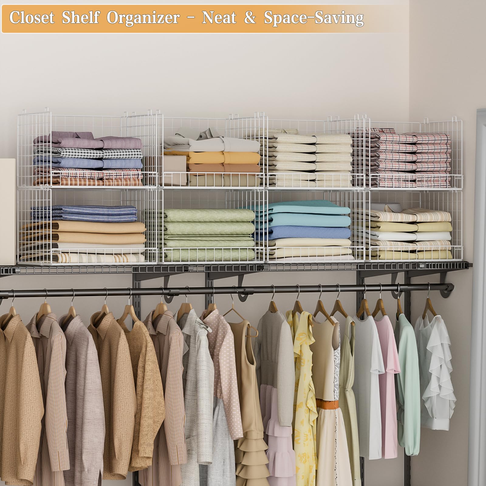 【Easy to Assemble】Comes with installation instructions, the closet organizers and storage are very easy to install,no screws or tools are needed. (When tightening the buckle, the front fence wire needs to be lifted upwards for better installation.)