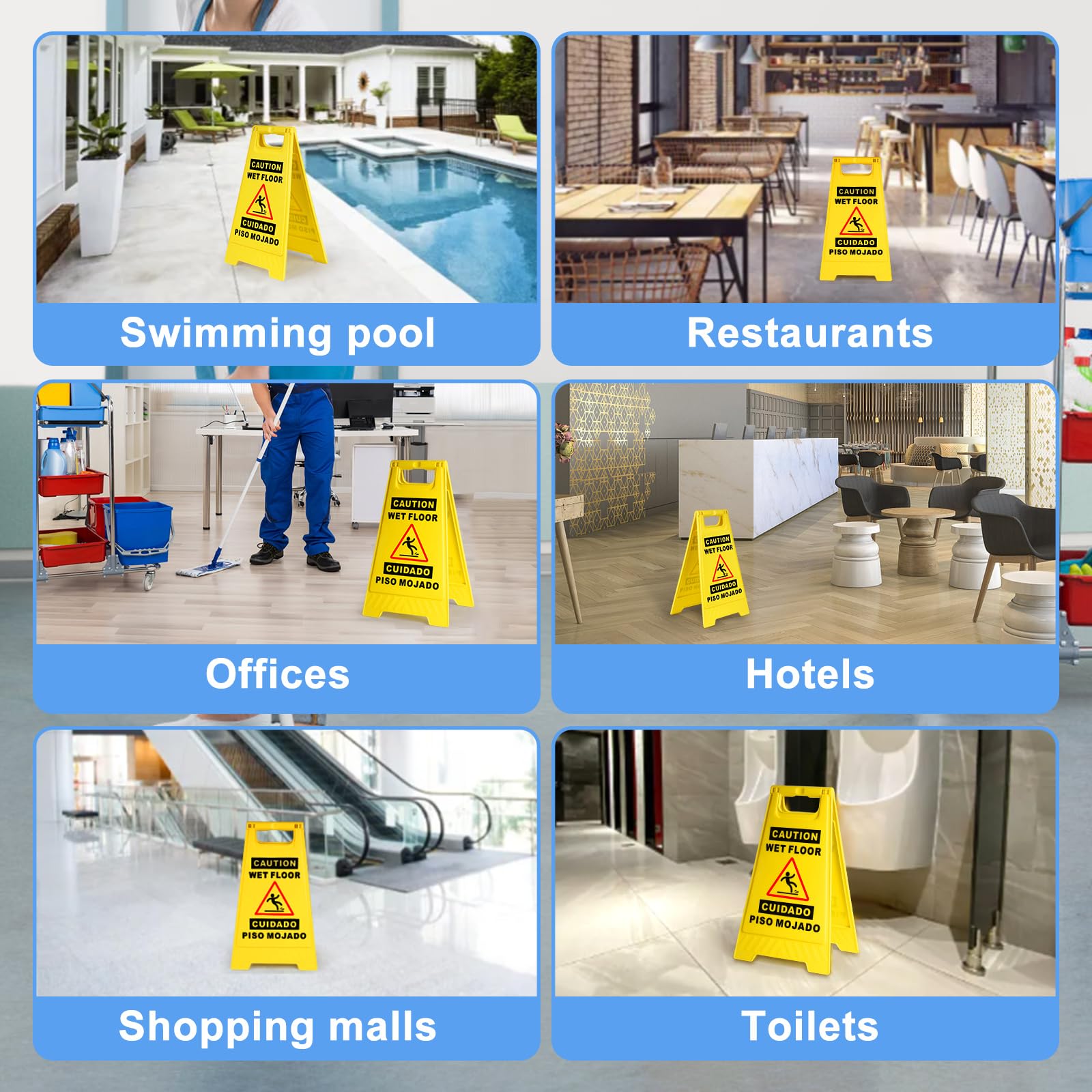 Wide Range of Use:Our wet floor signs are modest in size and economical, For use in hallways, restaurants, restrooms, shopping malls and other places where the floor may be wet.