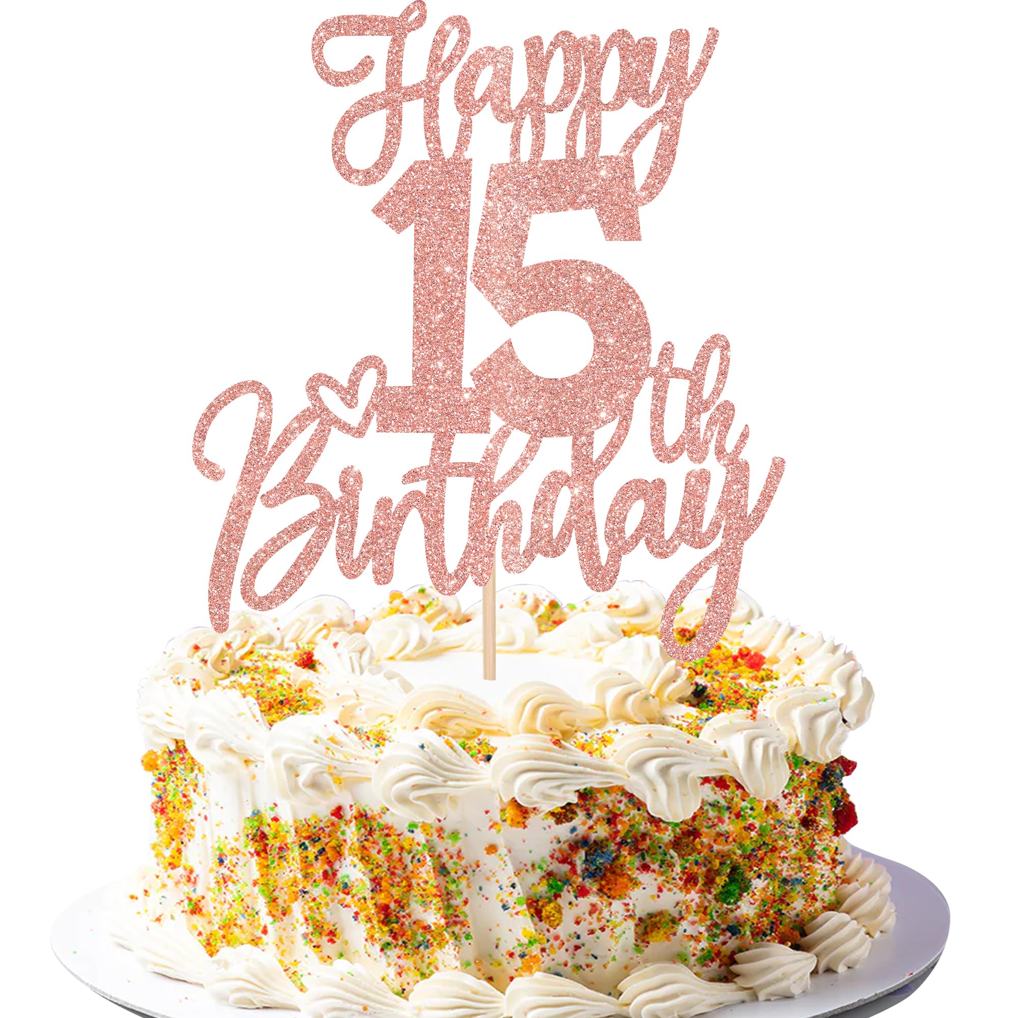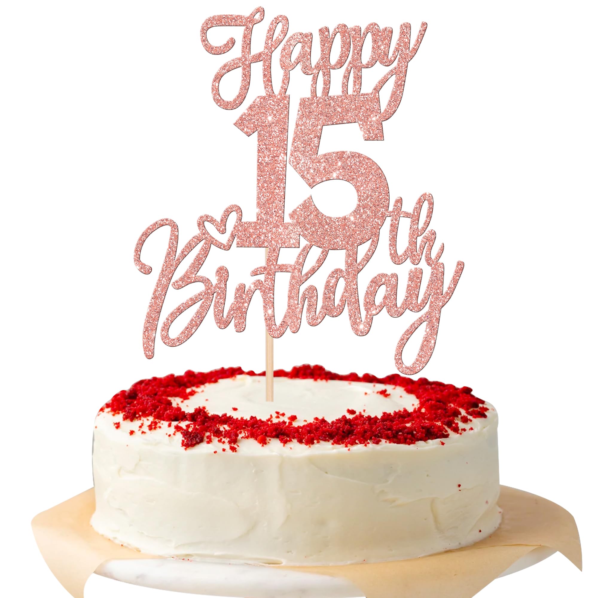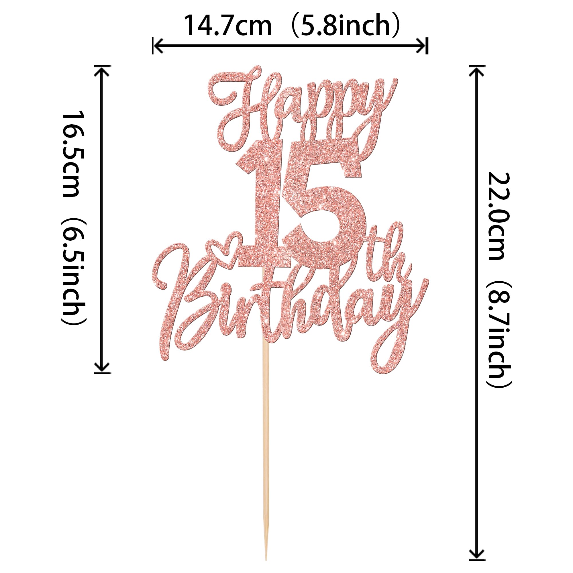 Happy 15th Birthday Cake Topper for Happy 15th Birthday Theme Party Cake Decorations Supplies Perfect for happy 15th birthday theme party,cheers to 15 years theme party,15th anniversary theme party cake decorations supplies. Pack of 1 pcs. The size is W 5.8 inch * H 8.7 inch / W 14.7 cm * H 22 cm ( with stick ) Made of high quality paper card stock and food grade sticks,thick and sturdy. This cake topper is one side glitter, another side is white, and this is intended for decoration only, please do not put them in oven or microwave. If the item you received has any defects, please contact us for refund.we will deal with it within 24 hours.
