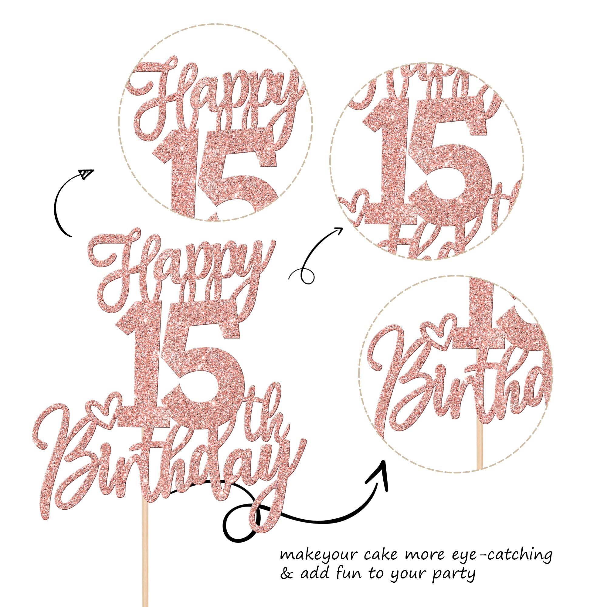 Wide Usages ! The cake topper is perfect for happy 15th birthday theme party, cheers to 15 years theme party, 15th anniversary theme party cake decorations, they can make your cake more attractive and bring the fun to your party.You can also apply them for ice cream, fruits, cookies and other desserts.