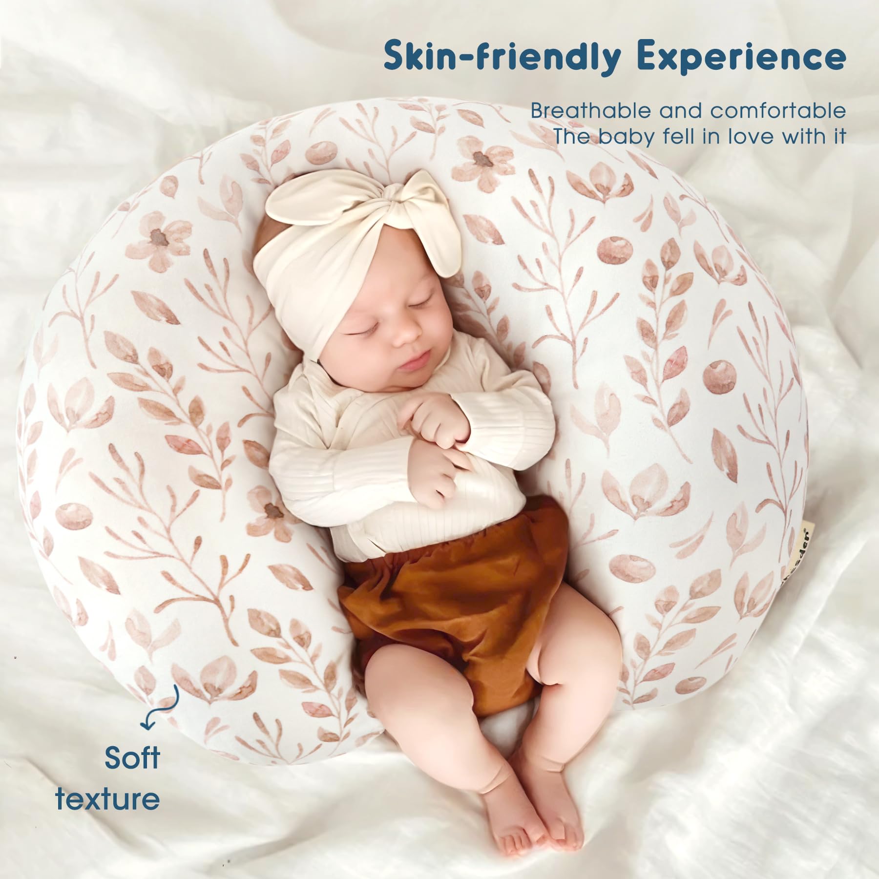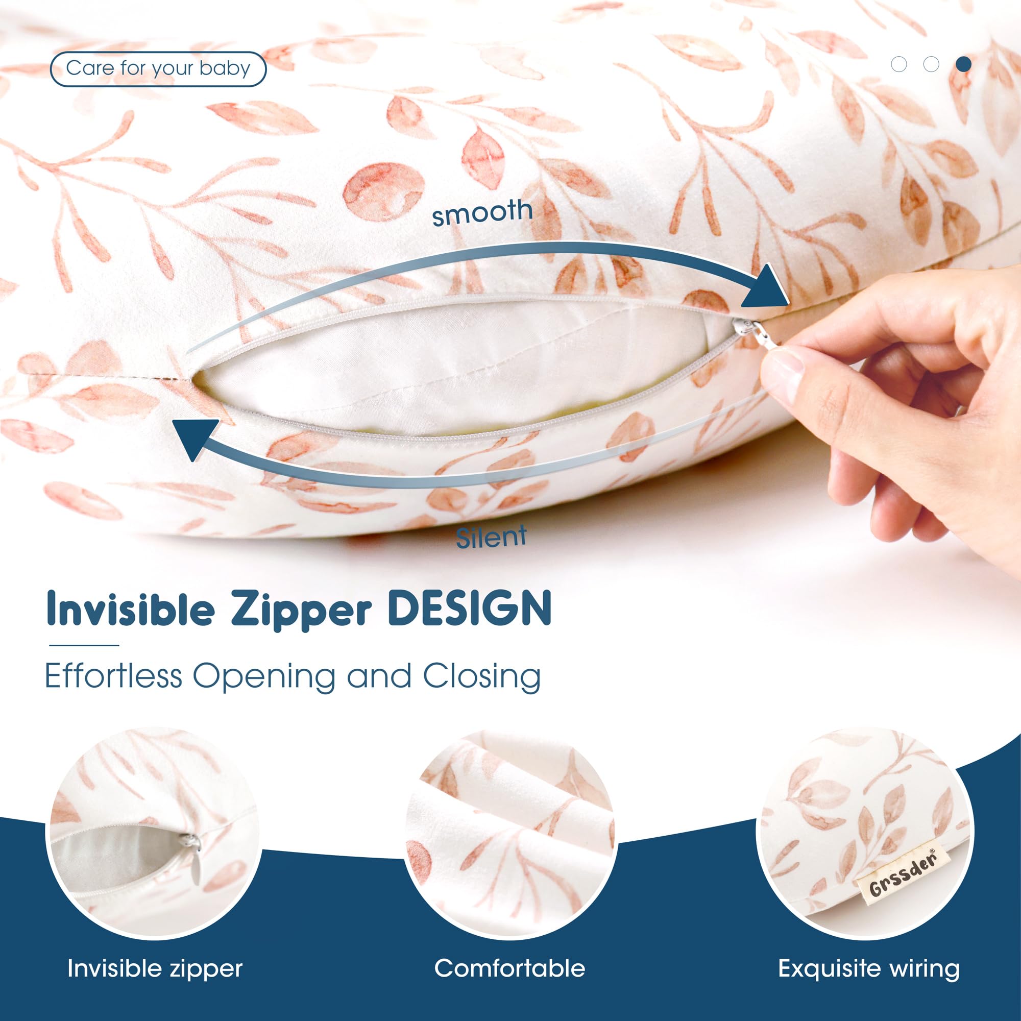 EASY INSTALL AND CLEAN: Thanks to the covered zipper, our convenient nursing pillow cover is quick and easy to slip on and off of nursing pillows, and they can be cleaned easily and effortlessly, because it’s machine washable and won't fade after hundreds of washing, which is good difference from cotton material.