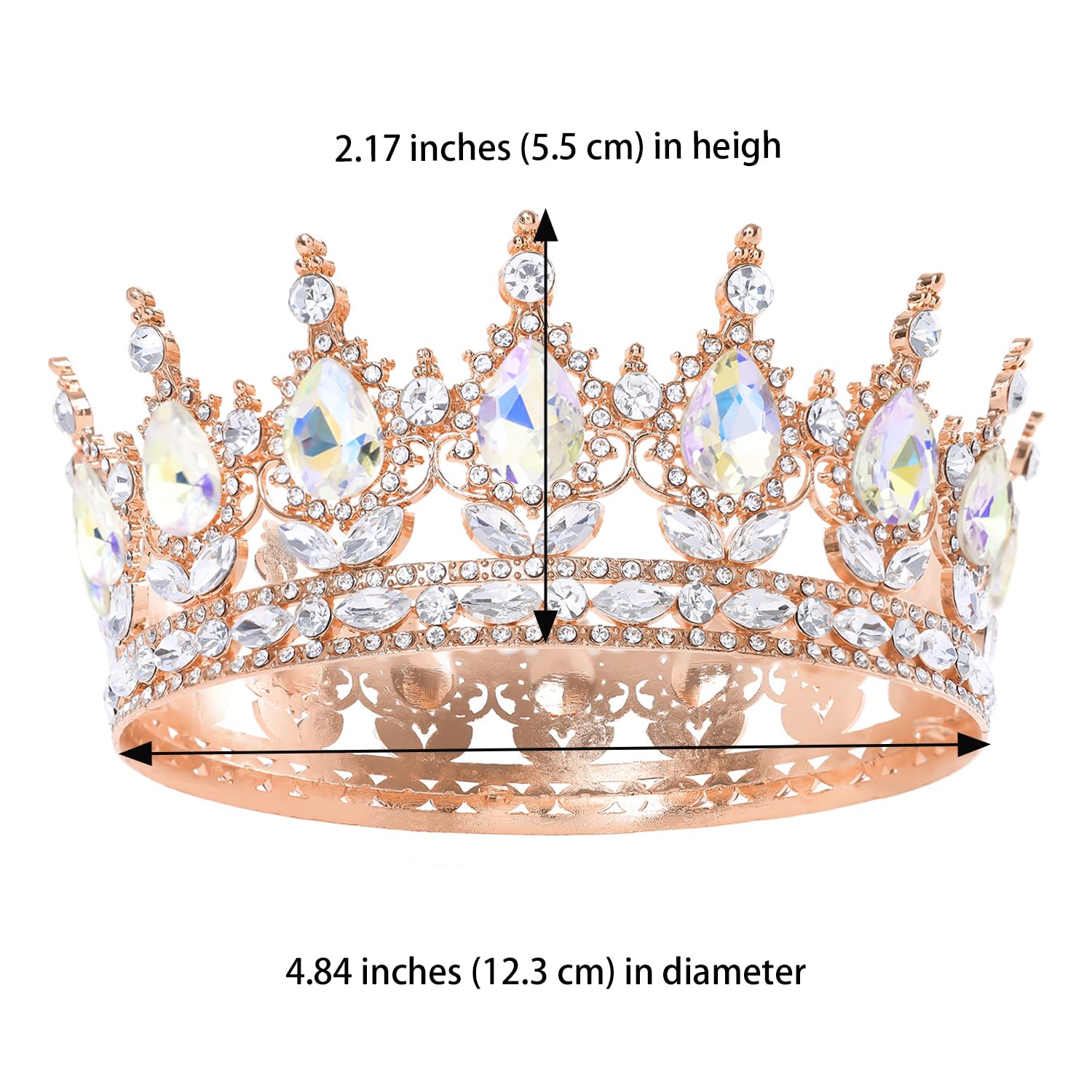 Size and Package: Our tiara crown are suitable for adult women, Diameter about: 4.84 inches, Height about: 2.17 inches, Weight about: 0.344 lb. The package includes clear box and four clips to fix the crown on your head and brings you a long and comfortable wearing experience.