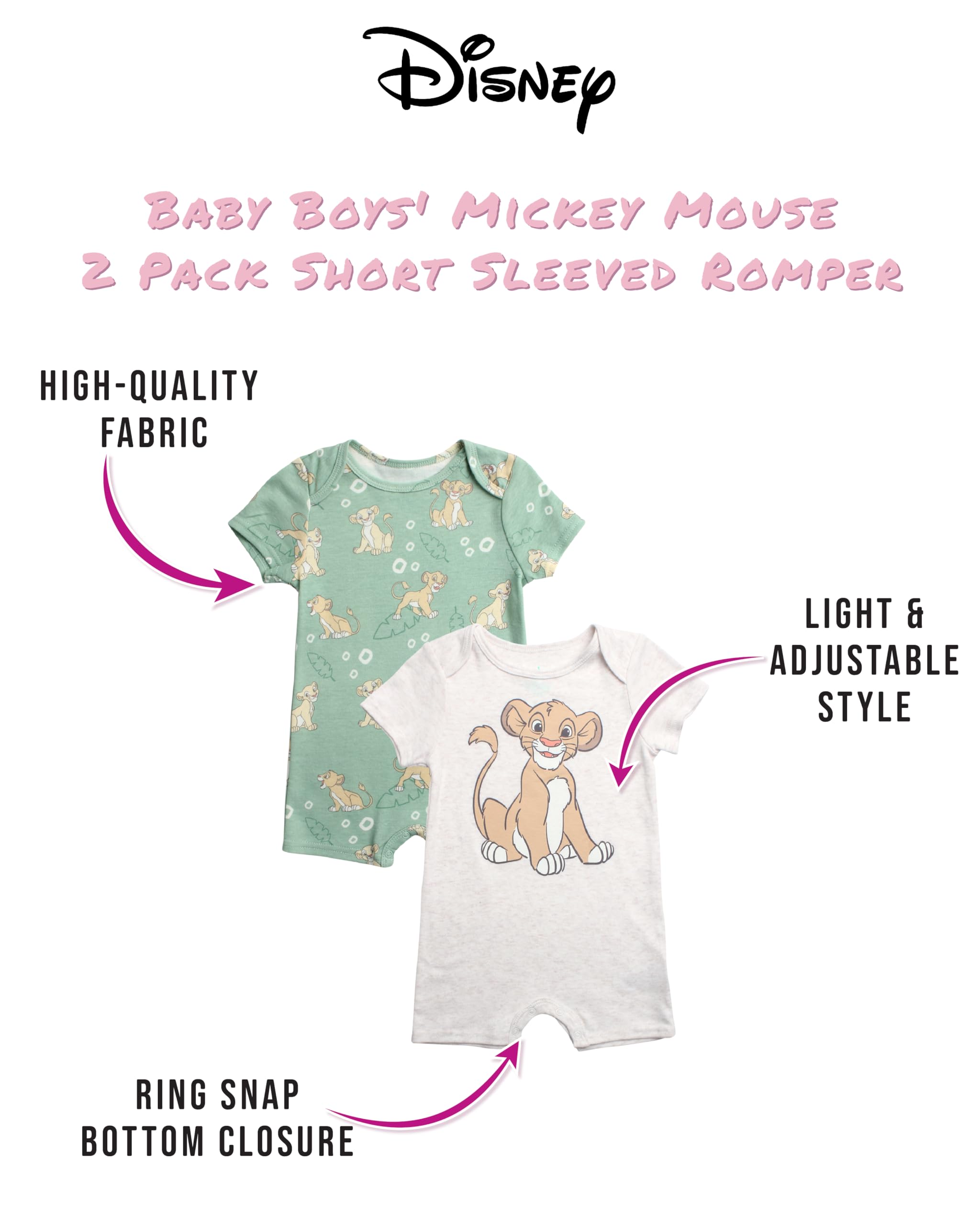 Baby Boy Clothes Playful Design: Bring fun into everyday dressing with this Disney baby boy romper featuring two cheerful short-sleeve jumpsuits with snap closures for quick changes. Whether you're looking for baby clothes boy, newborn outfits baby boy, or playful baby boy outfits 0-3 months, these colorful rompers keep your little one smiling and stylish.