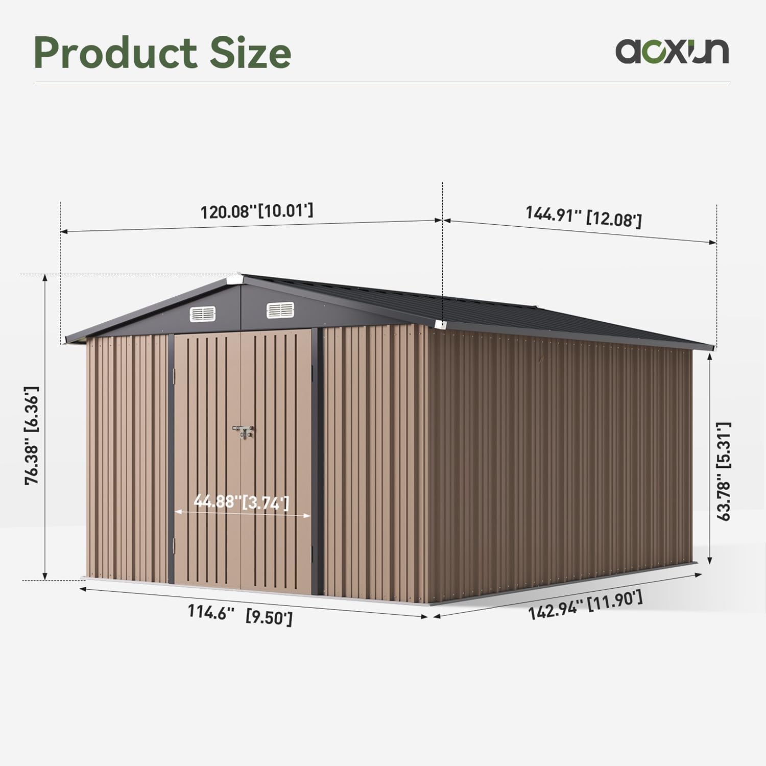 10'x12' Outdoor Metal Storage Shed with Lockable Door & Sloping Roof- Ideal for Tools, Garden Equipment & Bikes, Perfect for Patio Placement(Brown)