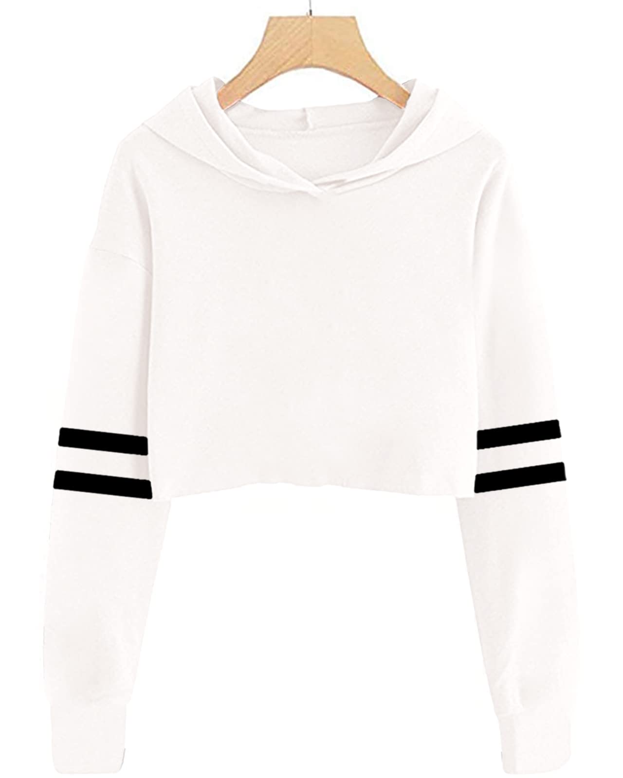 Features: crop top -- casual full sleeve top, striped shirt, hooded pullover sweatshirt, fitted; bottom -- high waisted, elastic waistband, baggy joggers, loose-fitting pant sets