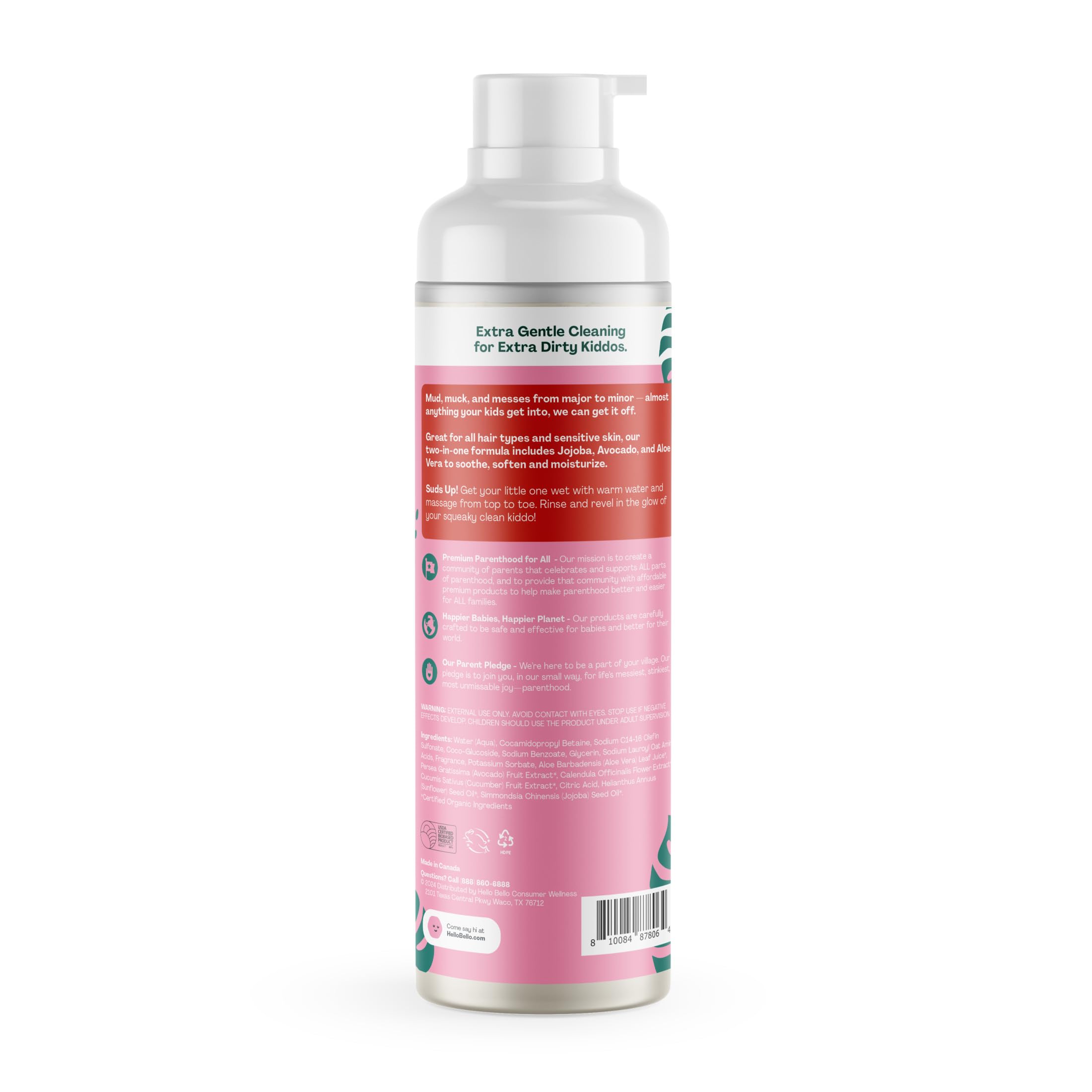 Hello Bello Watermelon Scented Kids Shampoo & Body Wash is Dermatologist Tested, Pediatrician Approved, Hypoallergenic, Not Tested on Animals (Leaping Bunny Certified), USDA Biobased 90% and designed with babies, budgets, and the planet in mind