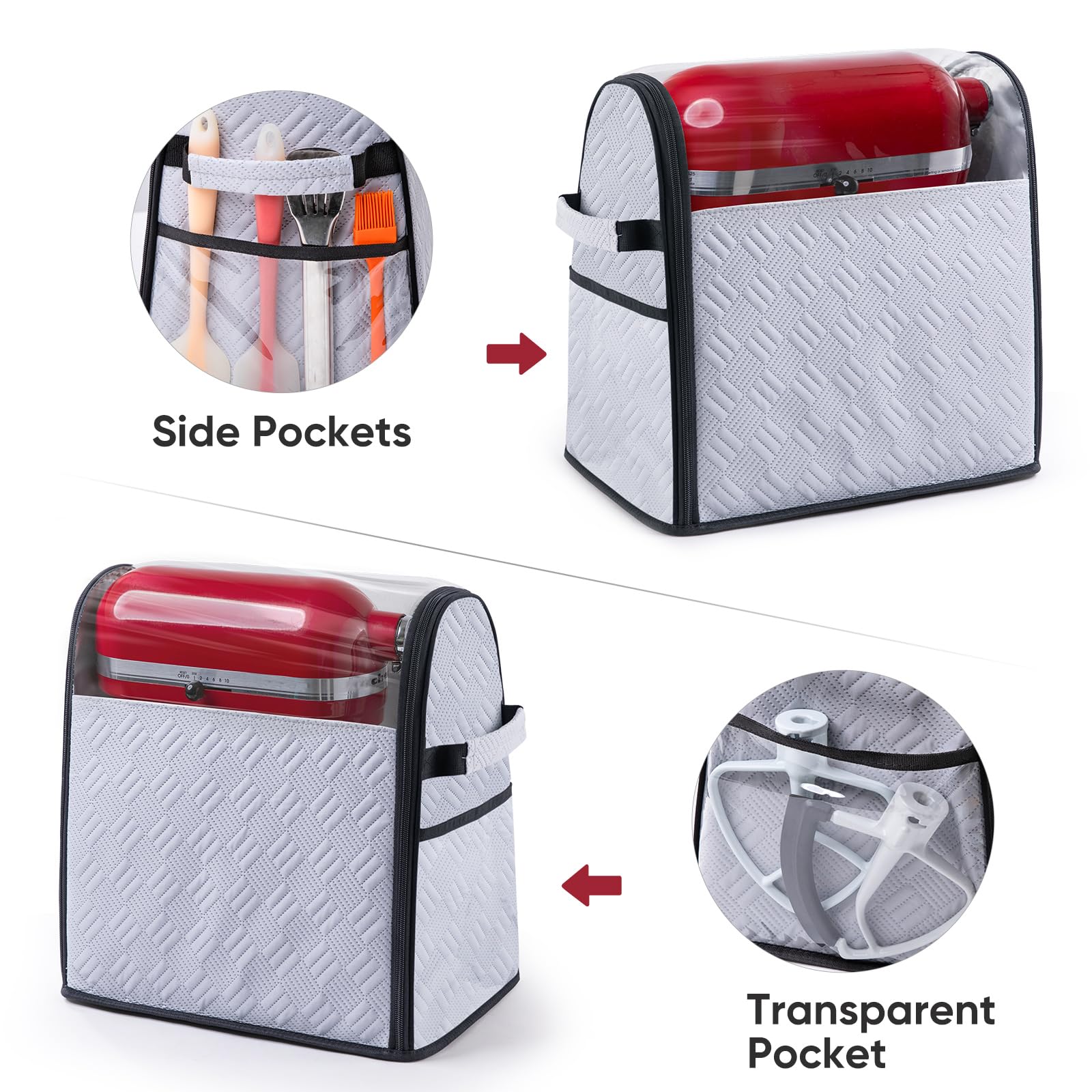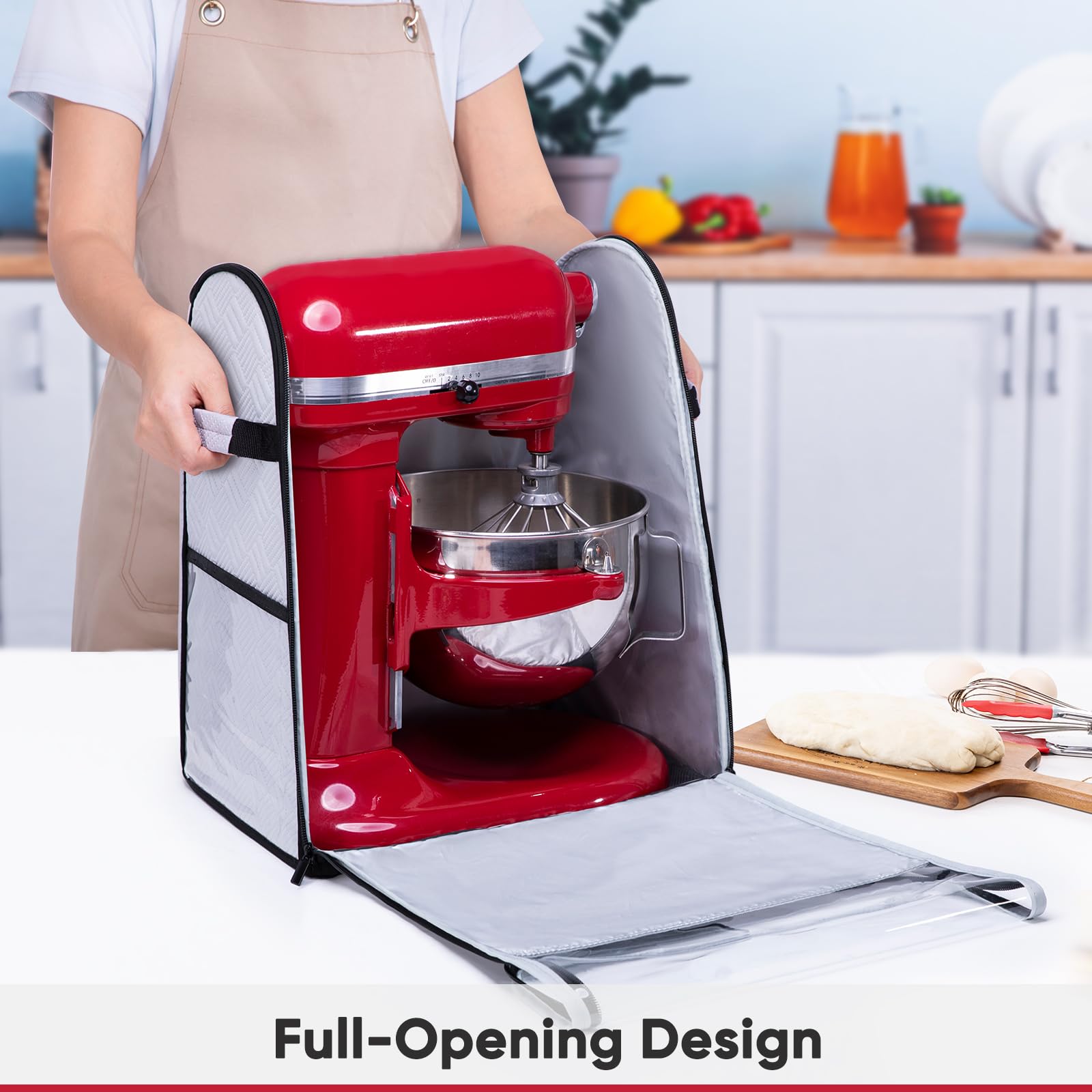 ✅ Convenient Full-Open Design: Designed with top and front zippers for easy access. You can quickly store or remove your KitchenAd stand mixer and attachments, such as dough hooks, whisks, or the ice cream maker attachment.