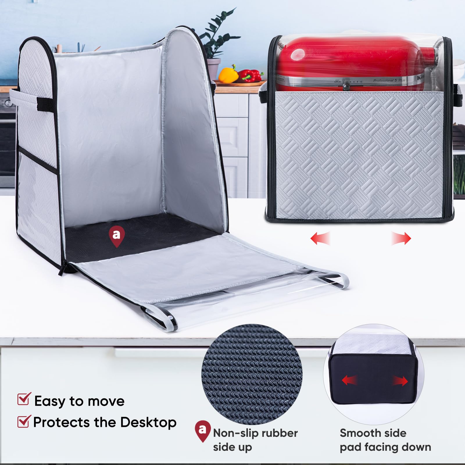 ✅ Complete Protection for Kitchen Appliances: Keep your KitchenA id stand mixer and attachments dust-free and clean. This heavy-duty quilted cover offers full coverage — including the base — perfect for protecting your kitchen aid accessories, bowls, and tools from dirt, spills, and ants.