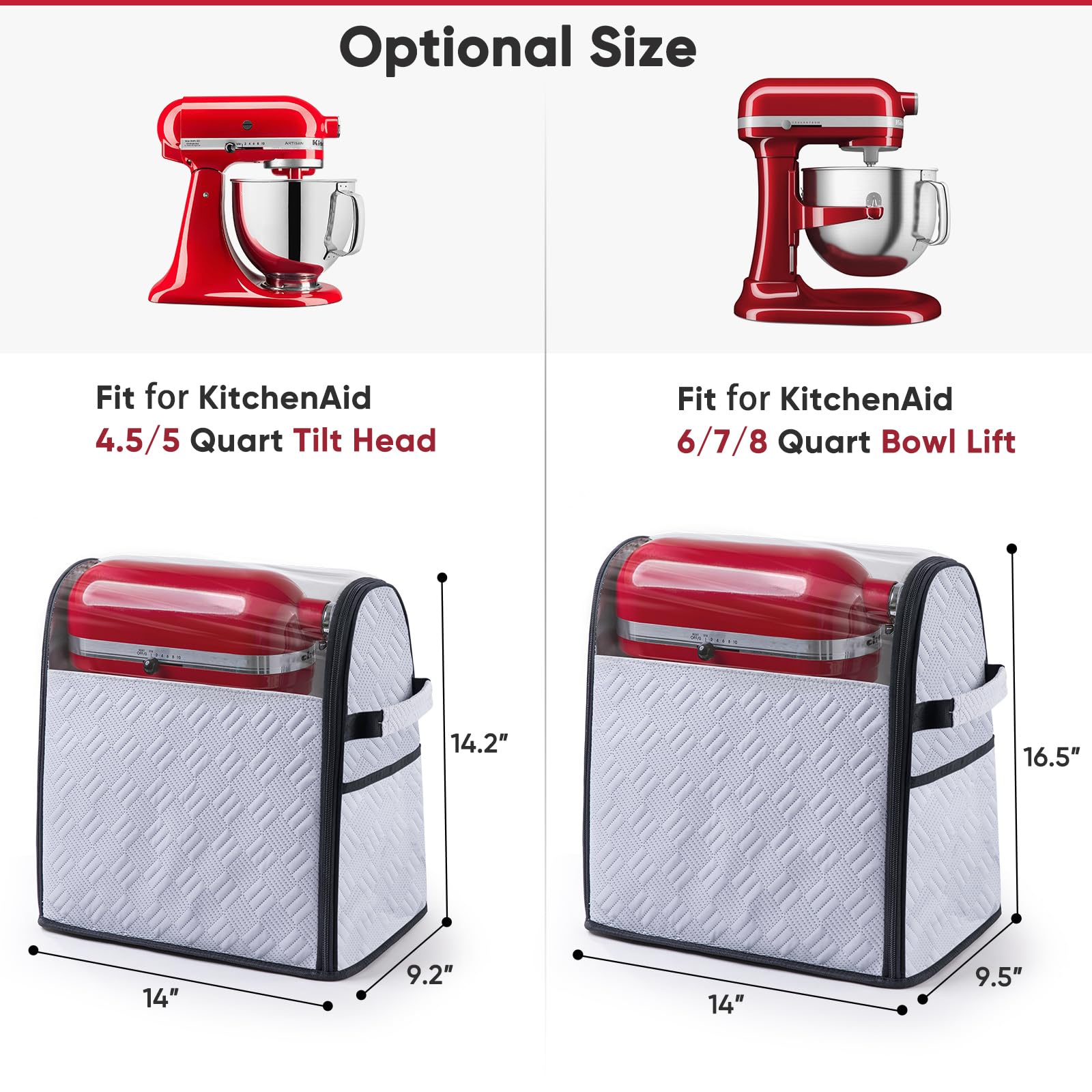 ✅ Fits for Multiple KitchenAid Models ( Available in 2 sizes) Small: Fits for KitchenAid 4.5–5 Qt Tilt-Head Mixers Large: Fits for KitchenAid 6–8 Qt Bowl-Lift Mixers (including 7 Qt and 8 Qt). Perfect for use with KitchenAd accessories, pasta maker attachments, meat grinder attachments, and more.