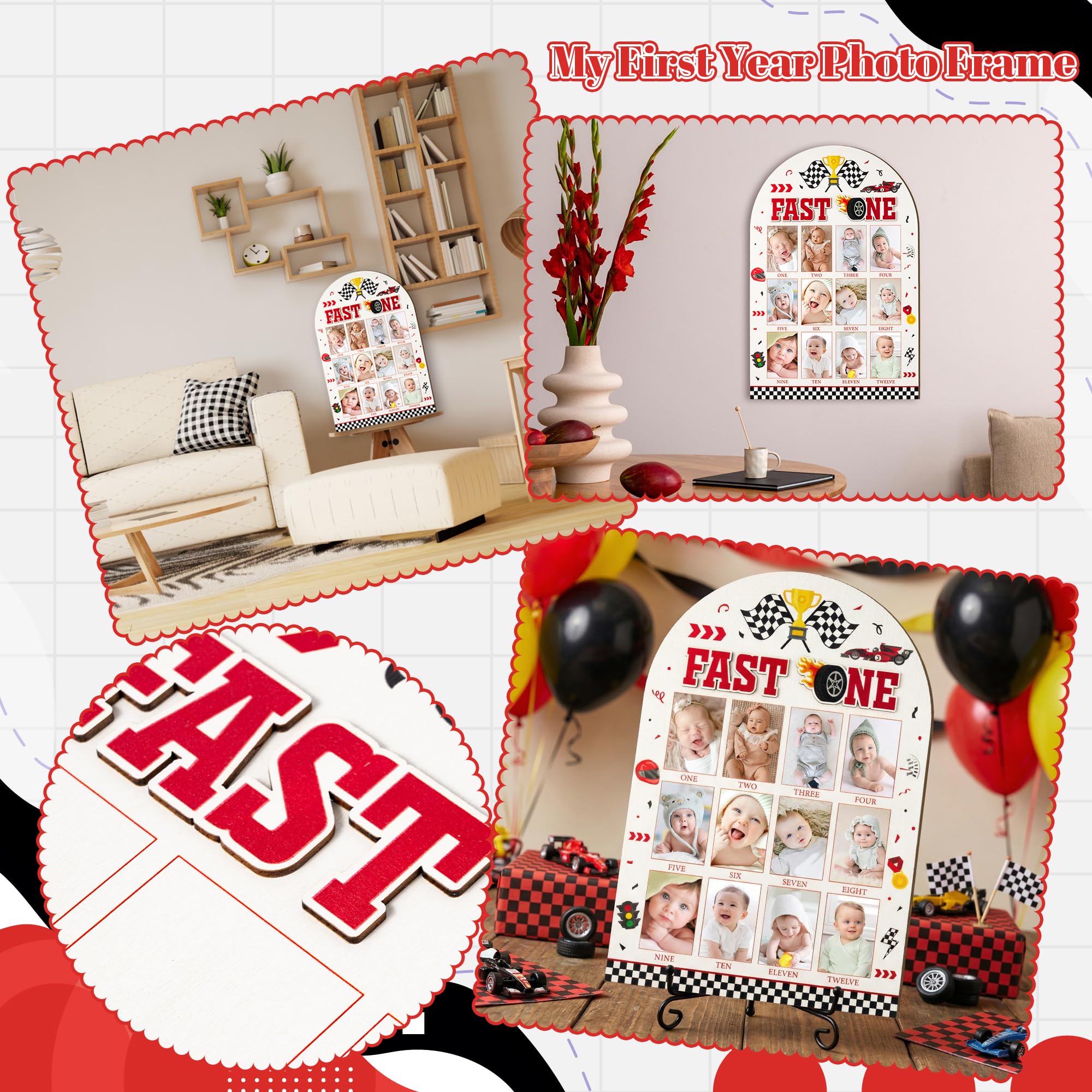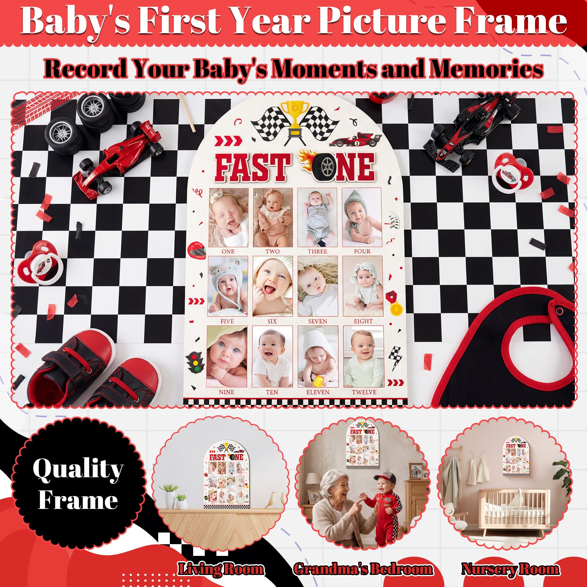 Race Car Theme Design: This baby first birthday photo board is a versatile addition to any space. Place it on a desk, hang it on the wall, or use it as a centerpiece at a first birthday party. The my first year photo frame birthday decoration easily transitions from celebrations to everyday nursery decor, celebrating baby's growth with charm.