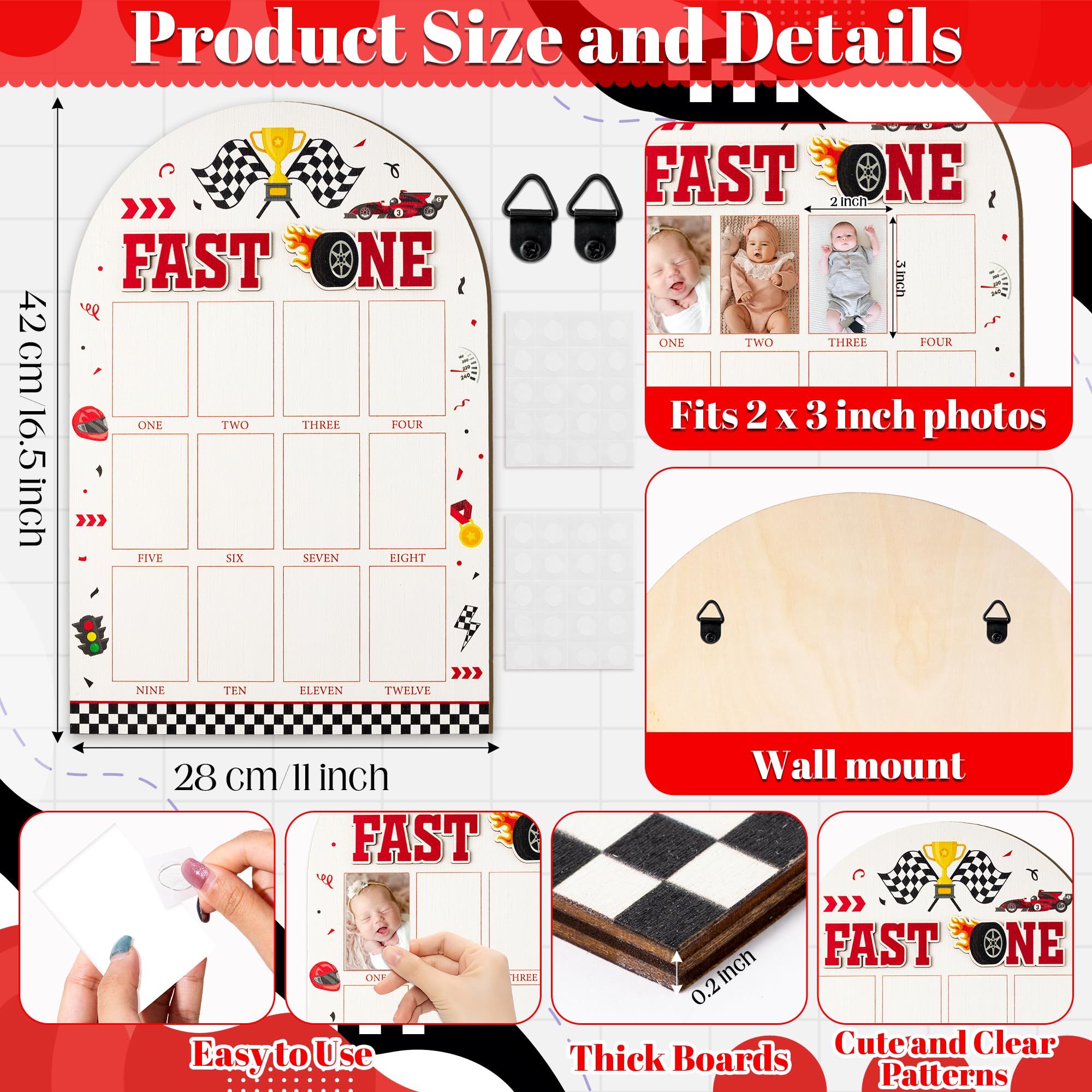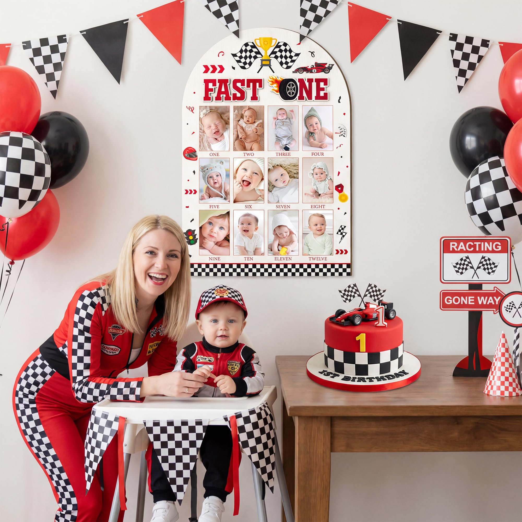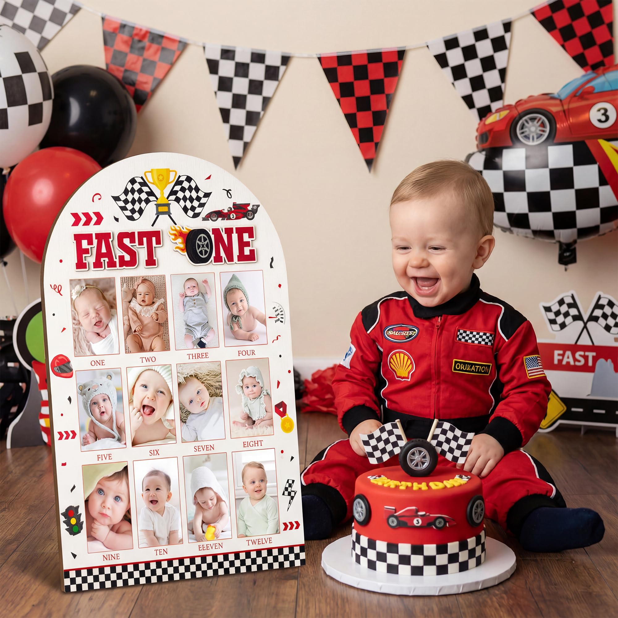Ideal Gift for New Parents: Give the gift of cherished memories with this race car themed photo board. Ideal for one year old birthdays, baby showers, or as a thoughtful present for new parents. This display wood board 1st birthday nursery decoration provides a heartfelt way to showcase baby's precious first year, celebrating each milestone.