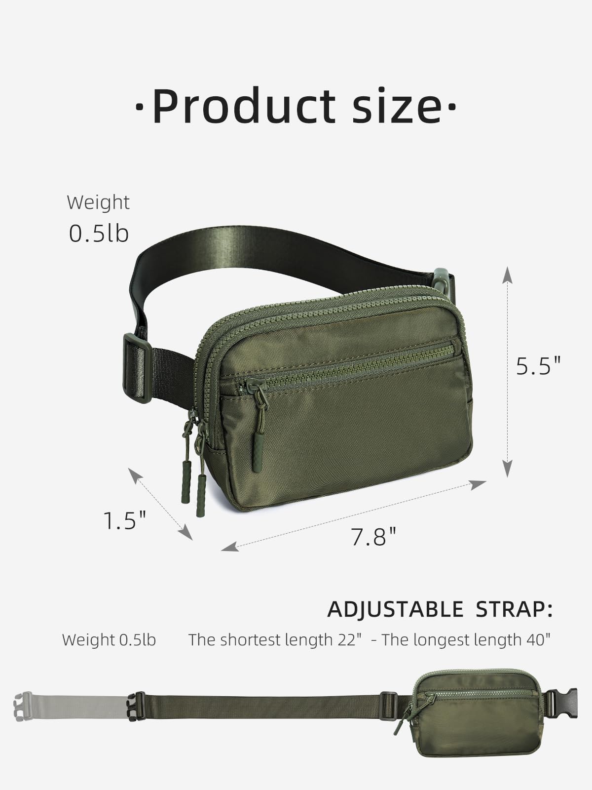✔️【DIMENSIONS】The fanny pack for women and men measures 7.8" x 5.5" x 1.5", with a strap length adjustable from 22" to 40".