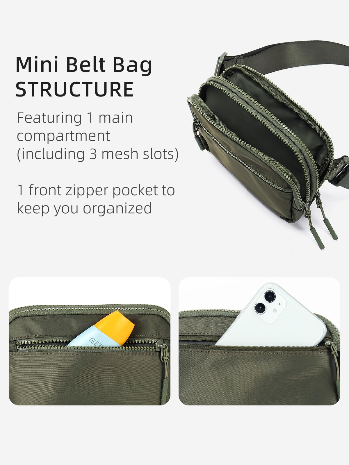 ✔️【SPACIOUS YET COMPACT】This nylon fanny pack boasts two zippered compartments, mesh pockets, and front/back pockets to keep your essentials organized and accessible.
