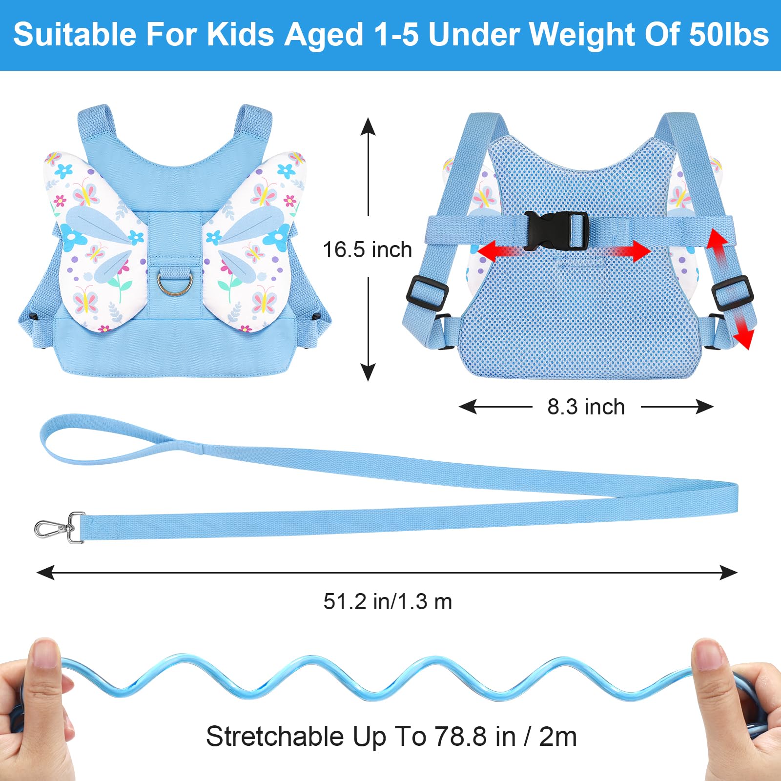 Adorable Design: Lovely and funny butterfly pattern original designed keep kids innocent and stimulate imagination. Front extra pocket for snacks handkerchief, the equipped anti-lost rope or other mini necessities
