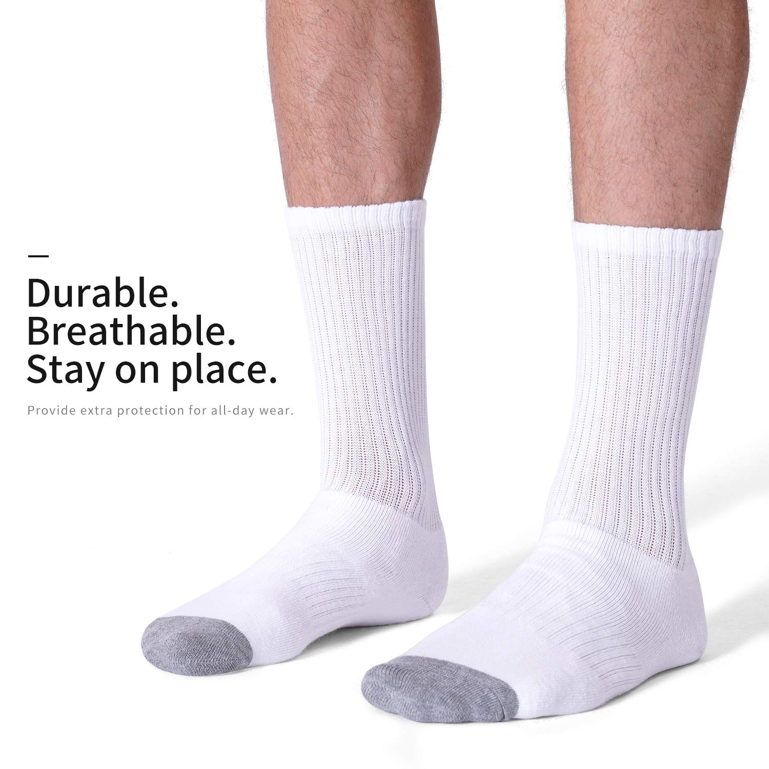 Comfort Cushion: Our mens crew socks with full cushioned soft towel fabrics suit for support in any work boot or shoes, helping you avoid blisters when hiking, running or other outdoor sports.