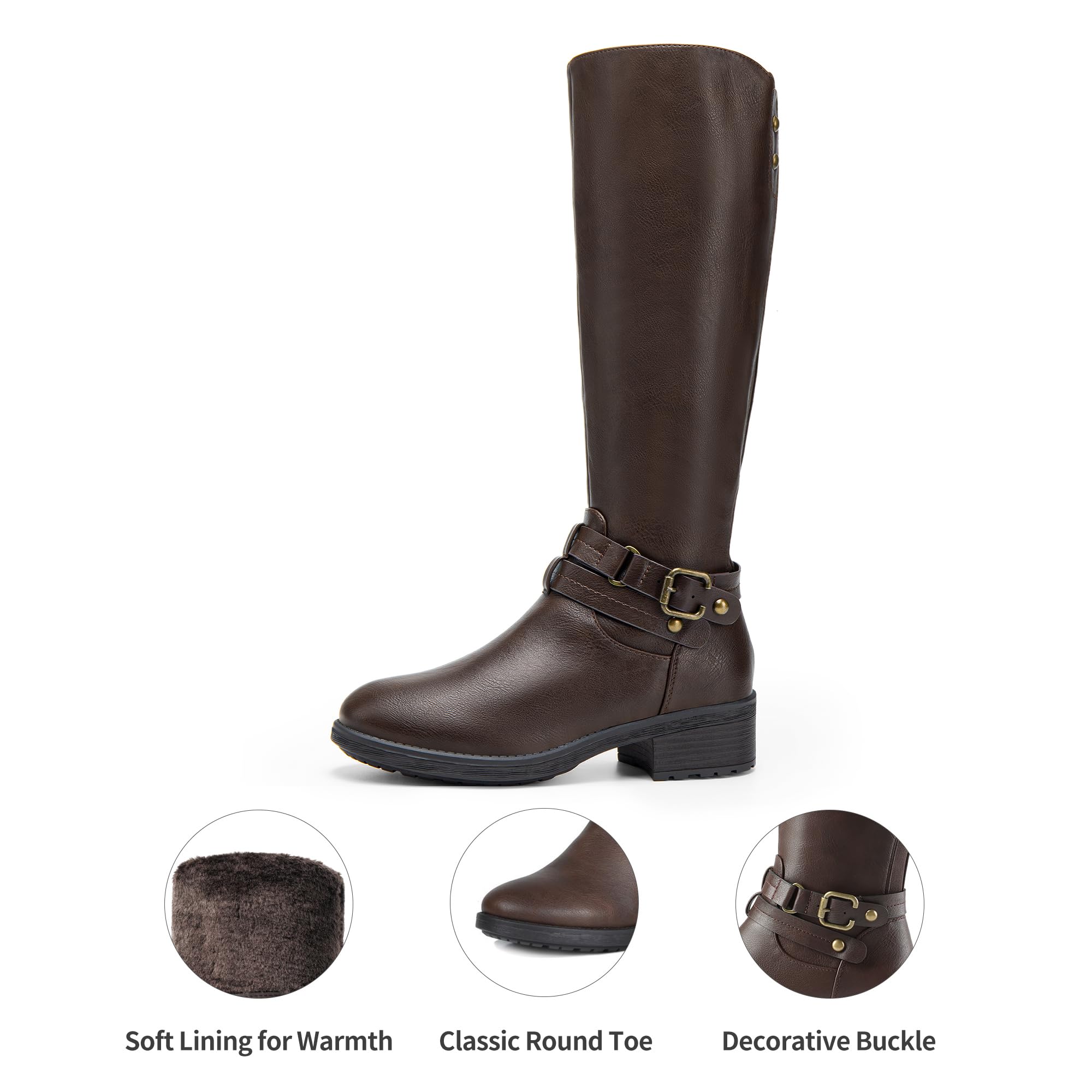 Description A Great And Comfortable Design This boot features a moto-inspired, riding style design, as well as curved antiqued zipper and instep zipper for easy on/off. The shoe also has a comfortable upper, an adjustable buckled ankle strap, and faux fur lining.