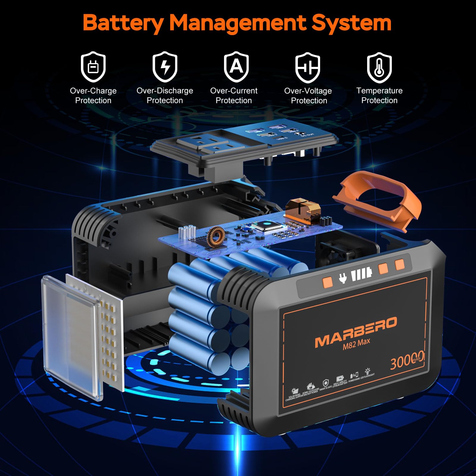 PACKAGE INCLUDED: 1*MARBERO Portable Power Station M82 MAX, 1*30W Solar Panel, 1*Power Adapter,1*Cigarette Lighter Output,1*User Manual