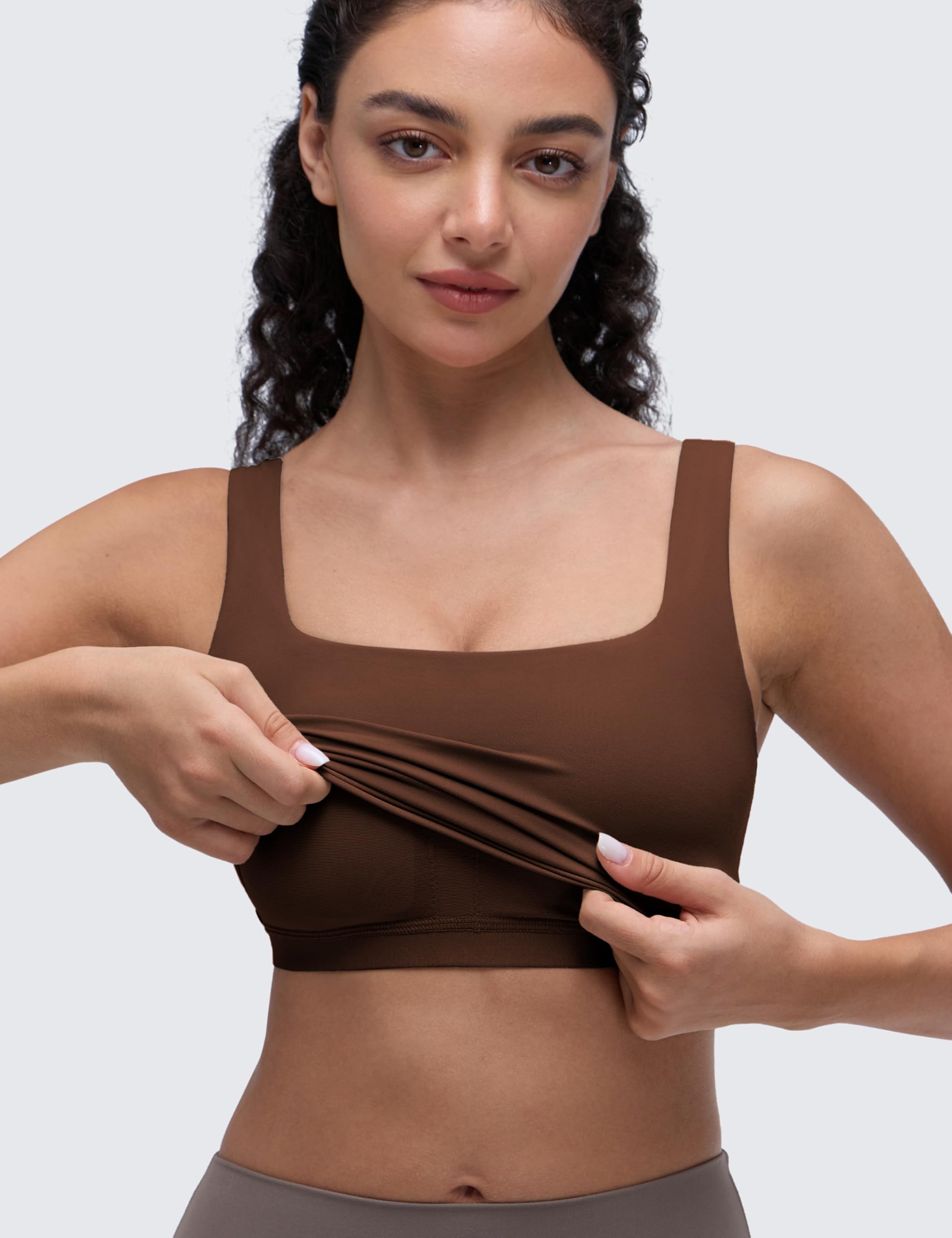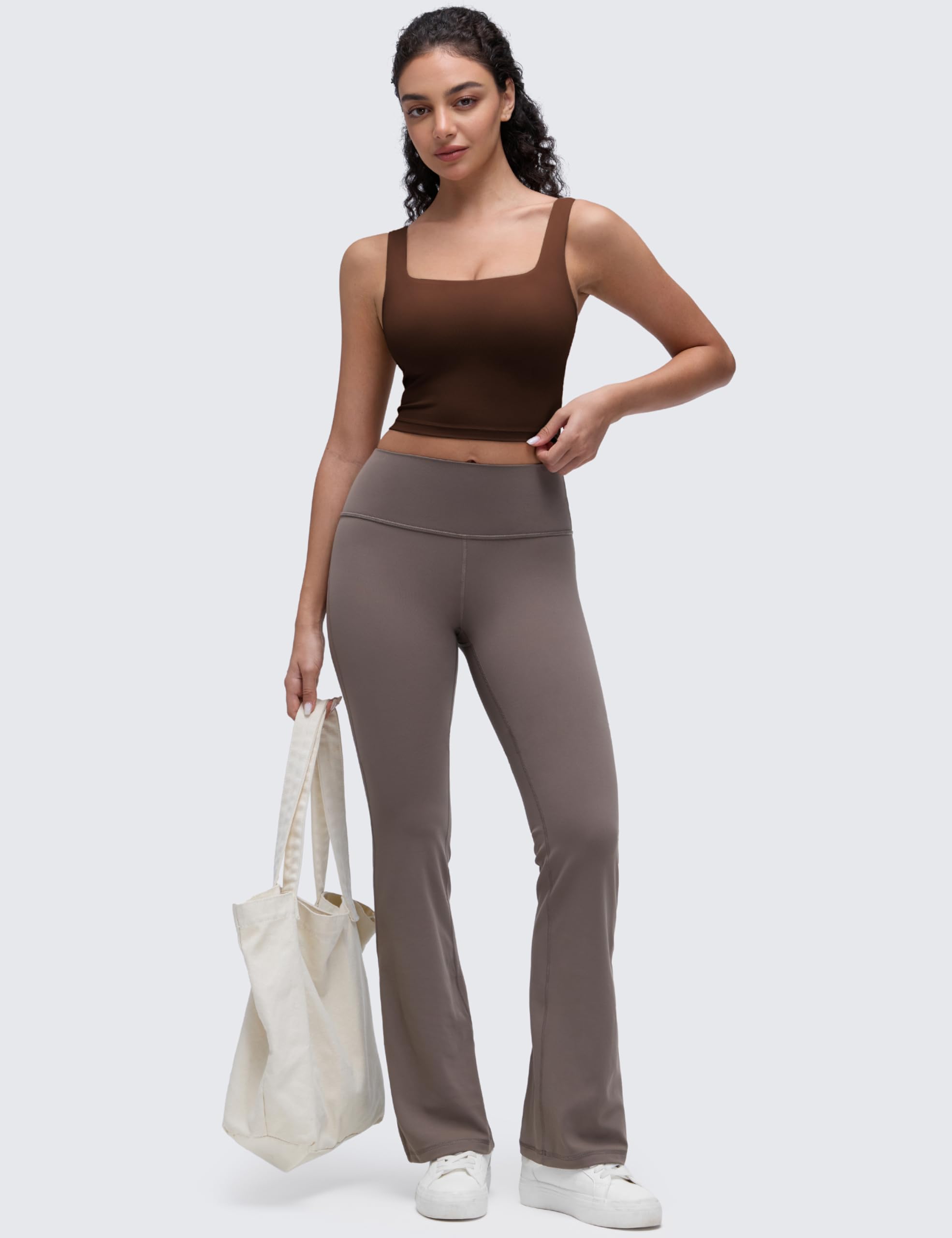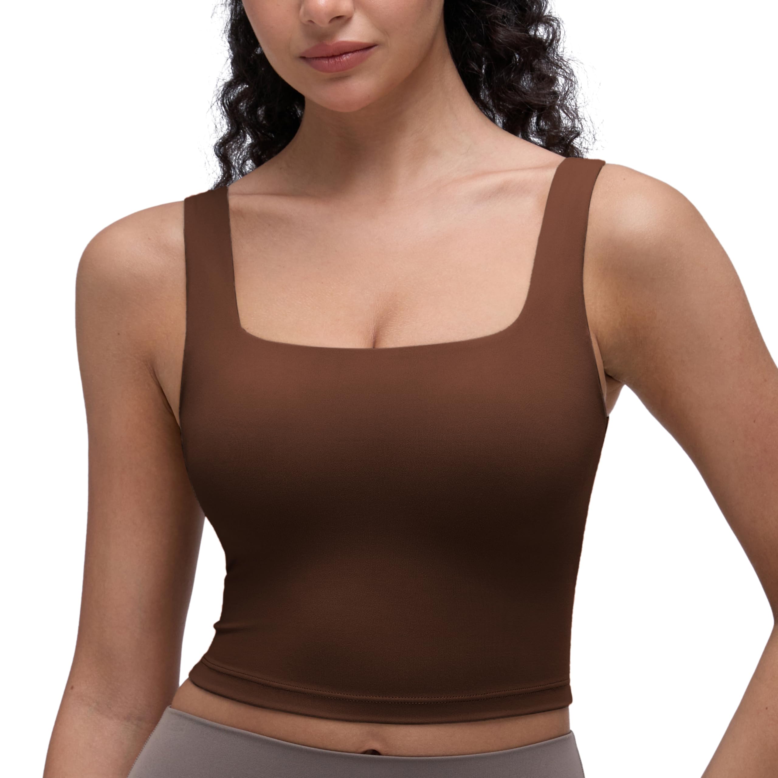 Cropped tank top that sits above the belly button, pairs well with high-waisted pants