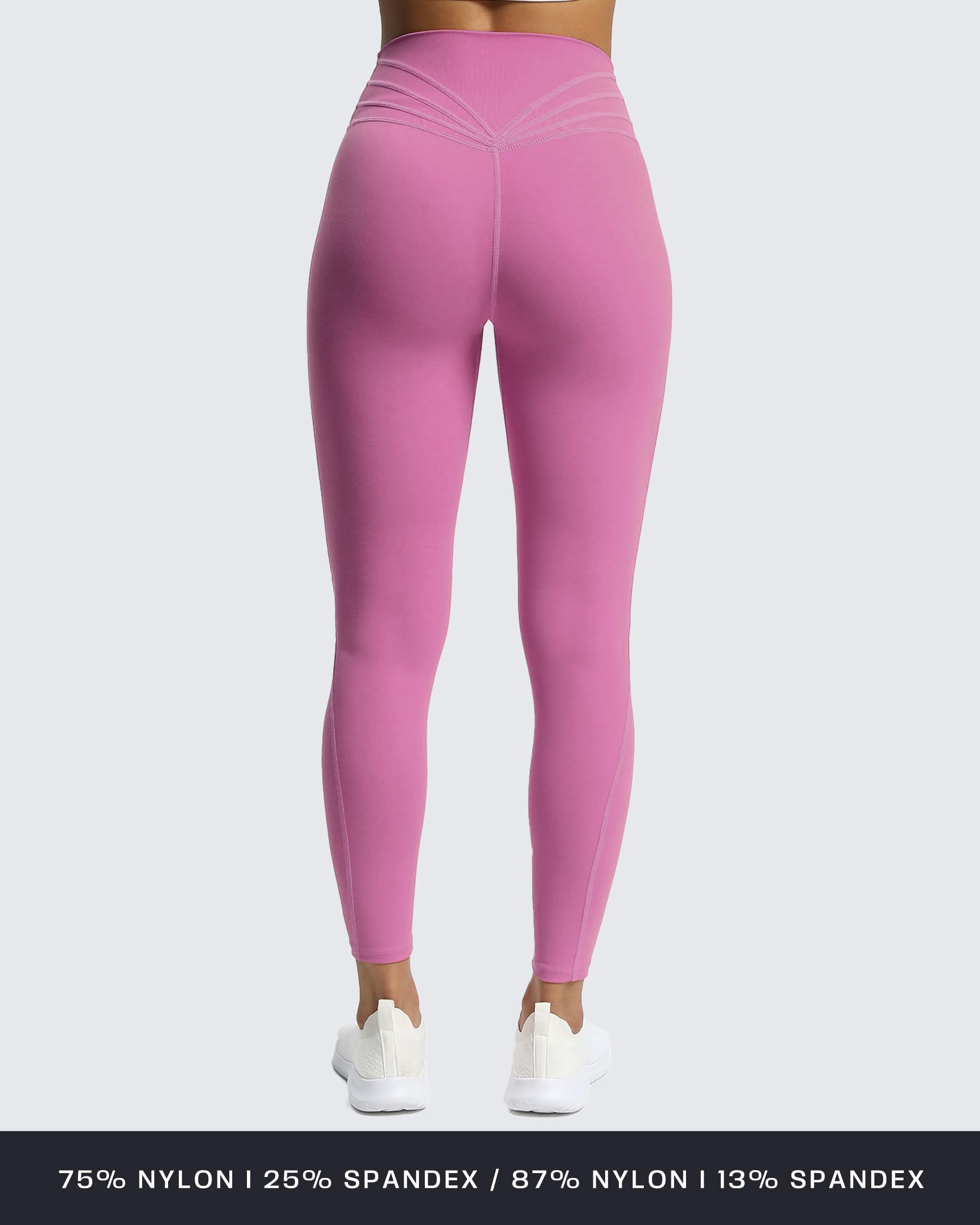 75% Nylon, 25% Spandex-Trinity women workout leggings crafted with our customized buttery soft fabric for a buttery-soft touch, moderate compression, and feel like a second skin, Created with no front seam and multi-seam design on the waistband back, these women workout leggings will be a staple in your life.