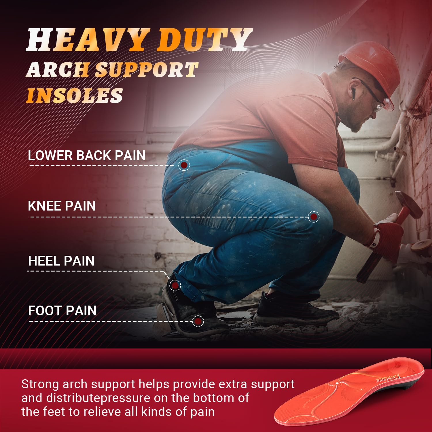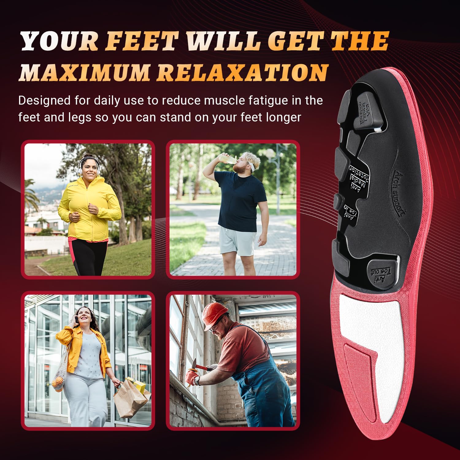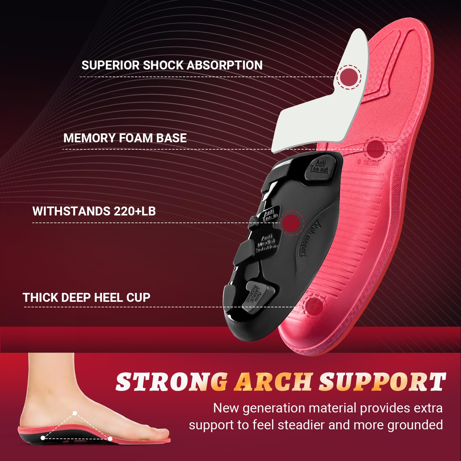 【HEAVY DUTY SUPPORT INSOLES】Specially designed for men and women weighing over 220 pounds, it provides super strong high arch support and shock absorption function, does not collapse, alleviates leg fatigue, and reduces the pressure on the feet caused by the body.