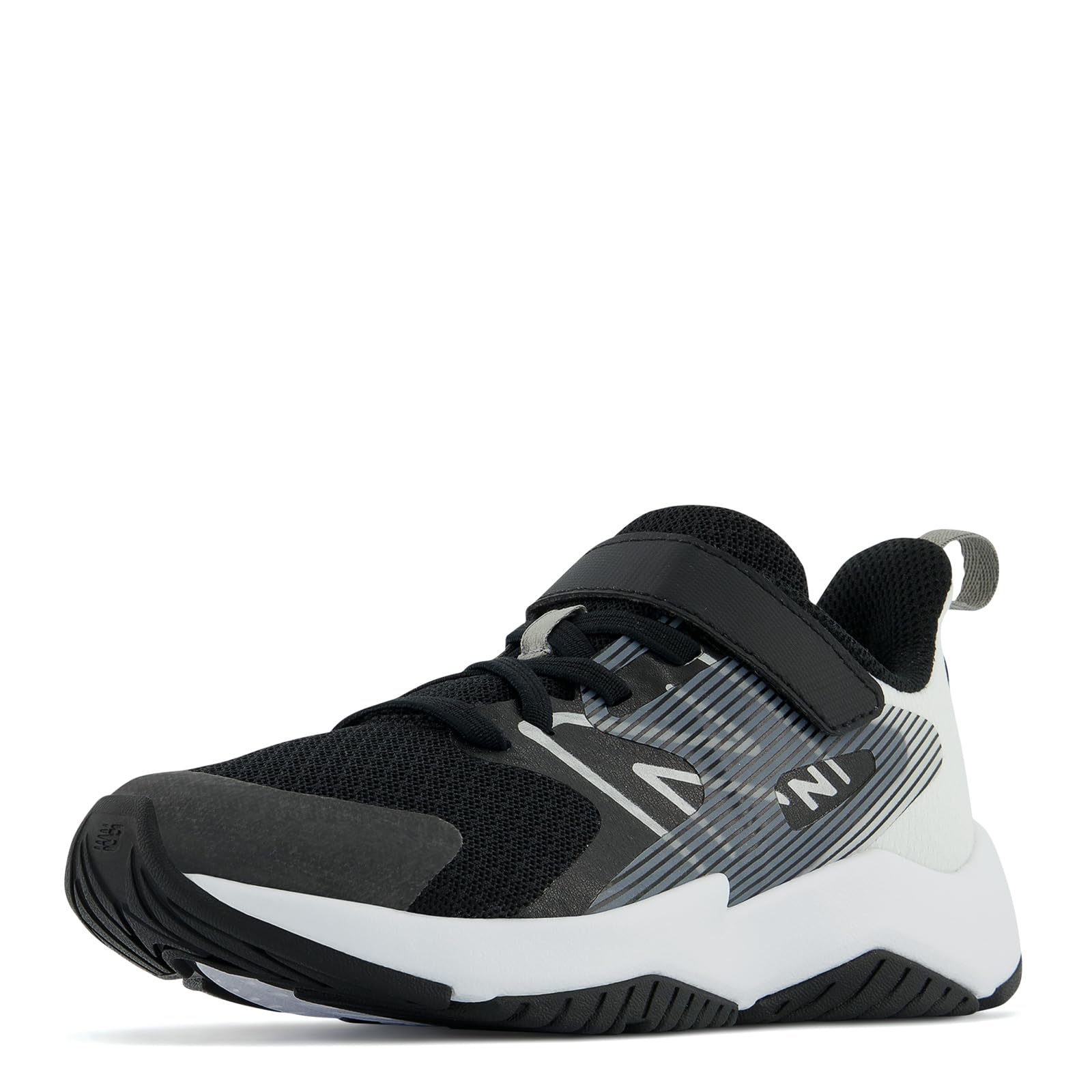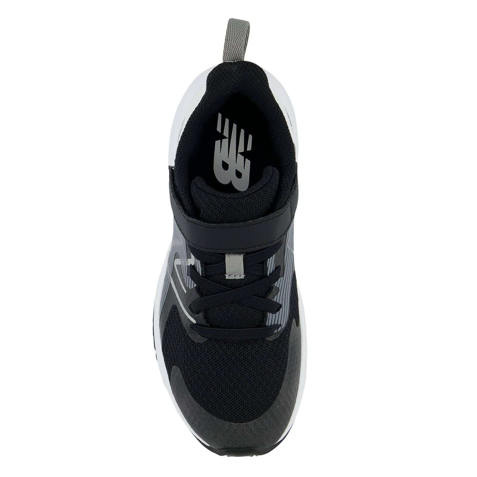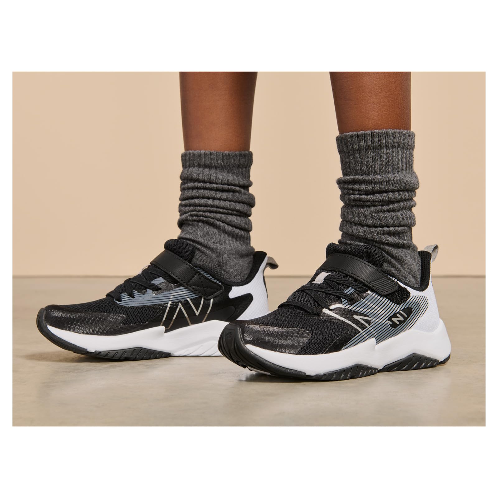 Description The Rave Run v2 Bungee Lace with Hook and Loop Top Strap kidsβ performance running shoe from New Balance offers soft comfort with a youthful vibe. The lightweight mesh and synthetic upper is breathable, with a no-sew tip for durability and no-sew saddle for midfoot support. Itβs designed with an IMEVA midsole that helps offer superior underfoot cushioning and a durable rubber outsole that can stand up to all-day play. An alternative closure allows for quick-and-easy changes that won't slow active tots down.
